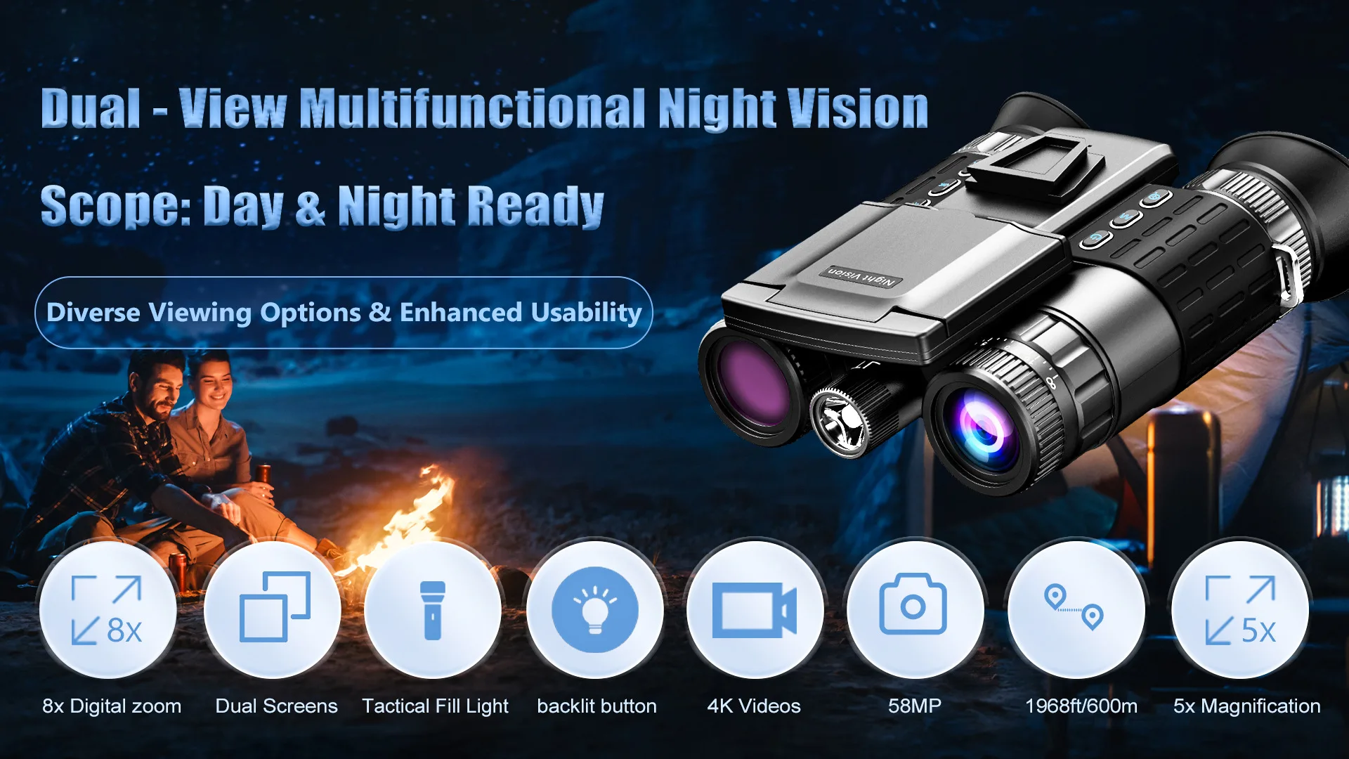 Main Uses Hunting, scouting, security and surveillance, camping fun, exploring caves, night fishing and boating, wildlife observation, lighting, security and photo taking, etc.