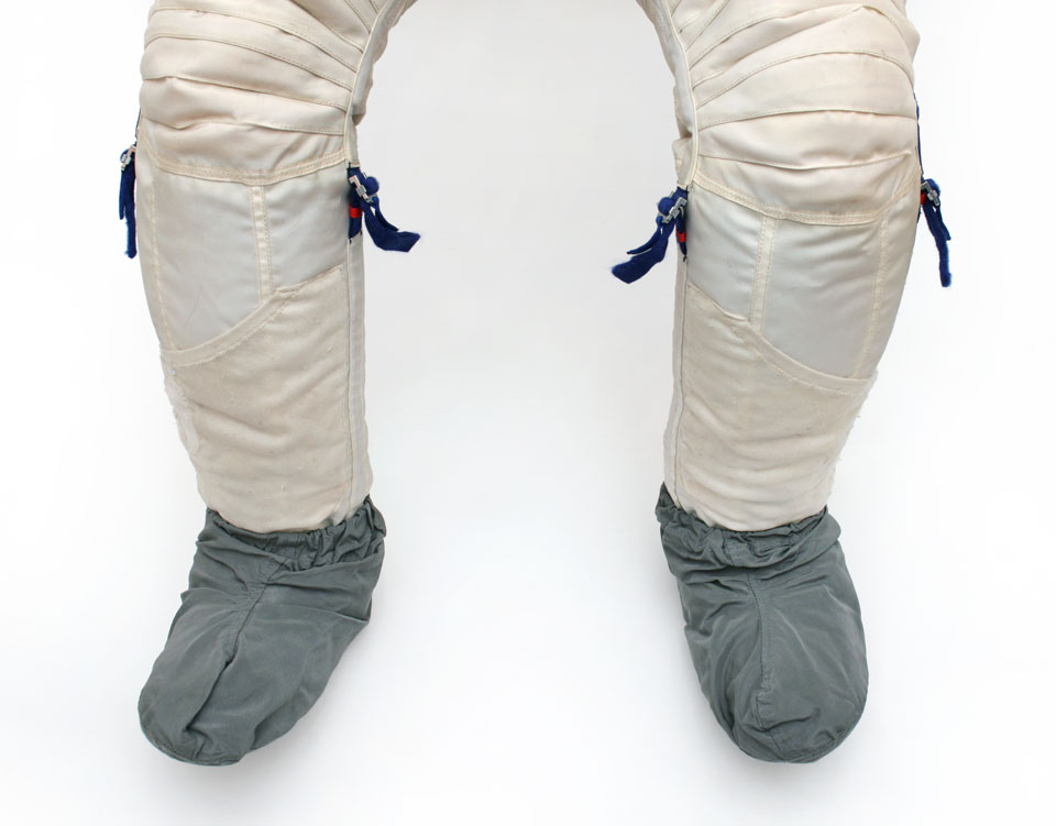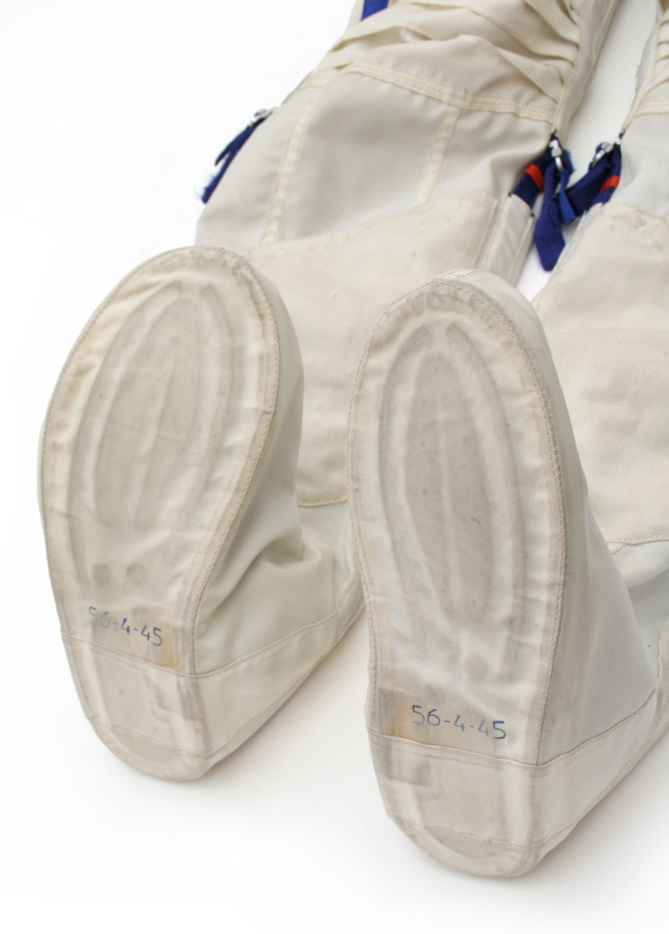 The spacesuit is quite large. Its feet are marked as 56-4-45, which implies a male cosmonaut of XL size, a shoe Russian size 45 (29 US) and a height of about 175 cm.