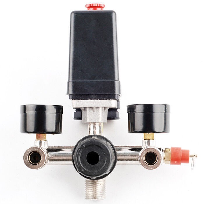 Compressed air unit incl. mechanical diaphragm pressure switch Compressor pressure switch: incl. pressure reducer - safety valve 8.8 bar - 2 pressure gauges and 2 compressed air quick connectors Spare/exchange parts for commercial compressors. Here you get a complete compressed air unit with a mechanical diaphragm pressure switch as it is commonly used in workshop and craftsman compressors. Closing and opening pressure can be set using hexagonal screws. Membrane pressure switch for single phase operation (230 volts)! Product advantages: Compressed air unit with pressure switch, connectors, safety valve and pressure reducer 230V pressure switch safety valve: maximum pressure 8.8 bar. 2 steel quick couplings Maximum pressure 10 bar, adjustable range 3.0 to 8.8 bar Technical specifications: Application: Compressed air compressor Connection: 1/2" external thread Switch pressure adjustable range 3.0 to 8.8 bar maximum allowed Pressure 10.0 bar 2-pole for simultaneous switching of phases and zero protection class IP44 (splash-proof) Operating voltage: max. 230 V, 16 A Scope of supply: 1 compressed air unit incl. pressure reducer, 230V pressure switch, 2 pressure gauges and 2 quick connectors