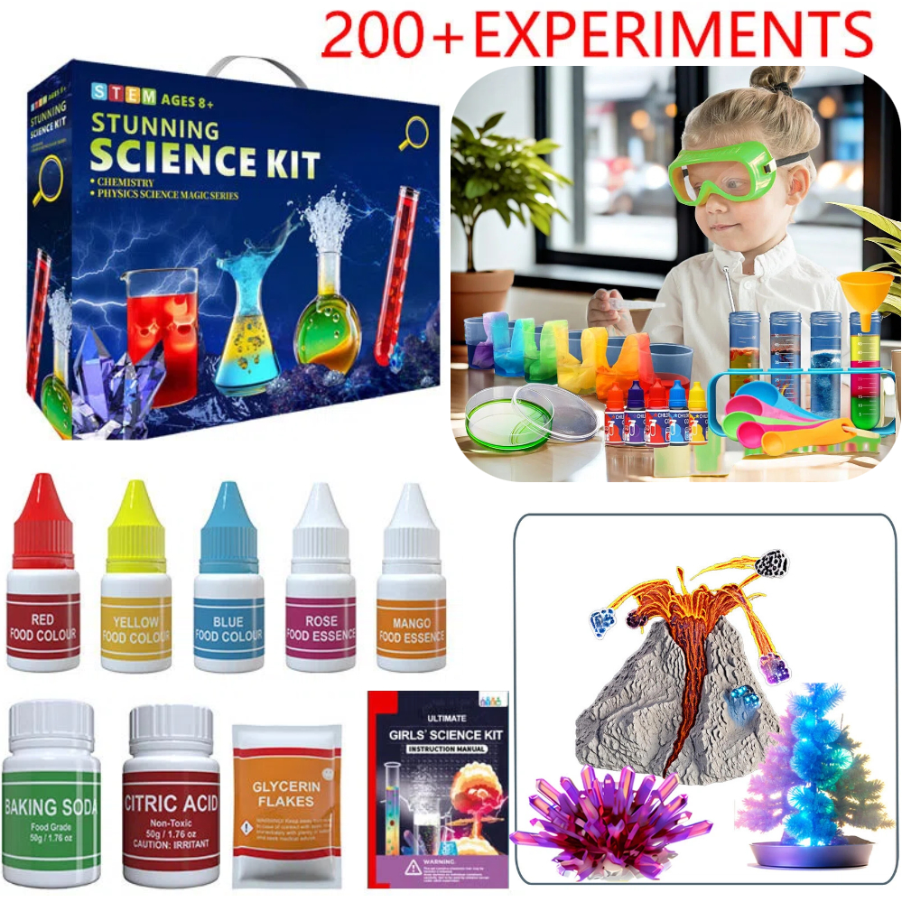 【220+ Hands-On Experiments】 Includes 50 core activities and 70+ bonus DIY projects using household materials. Covers crystal growing,