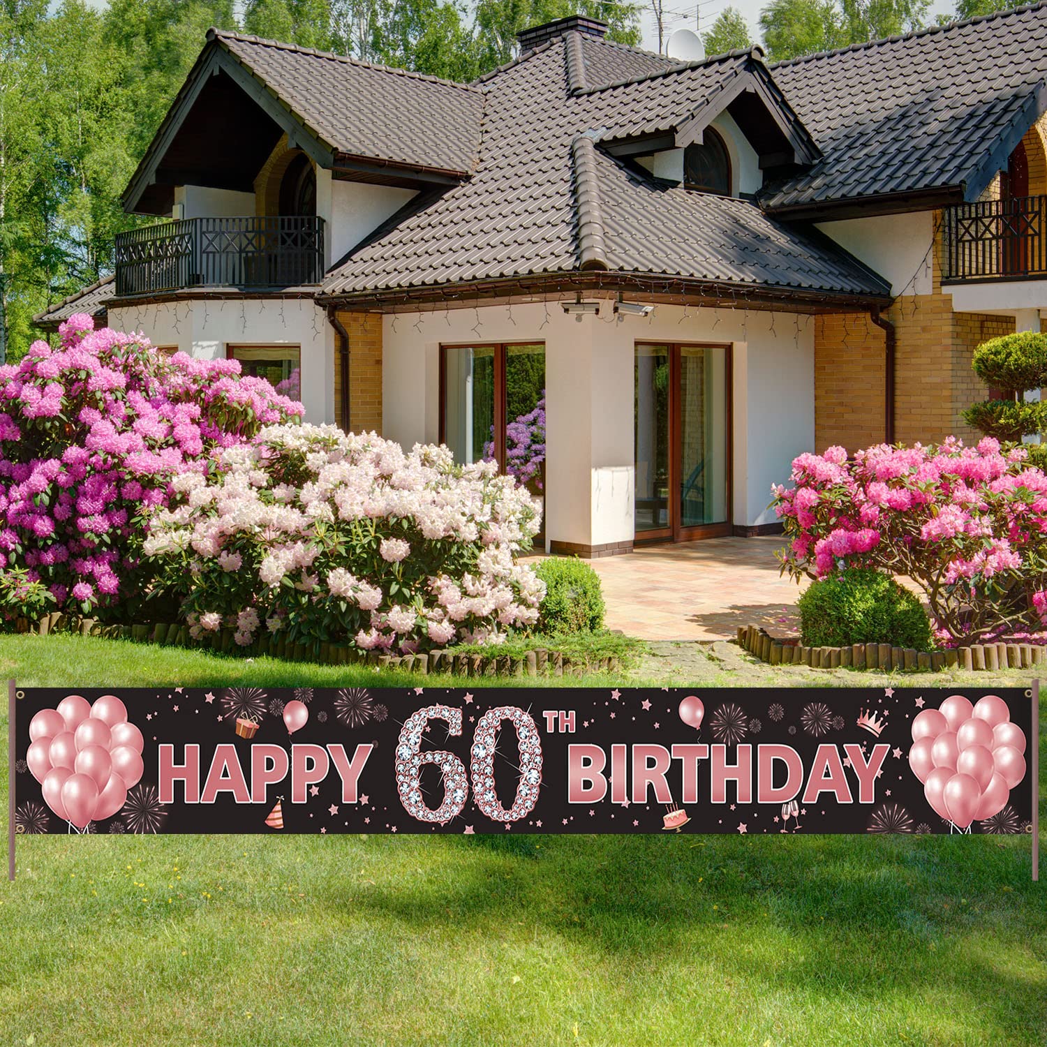 Rose Gold 60th Birthday Decorations Yard Banner
