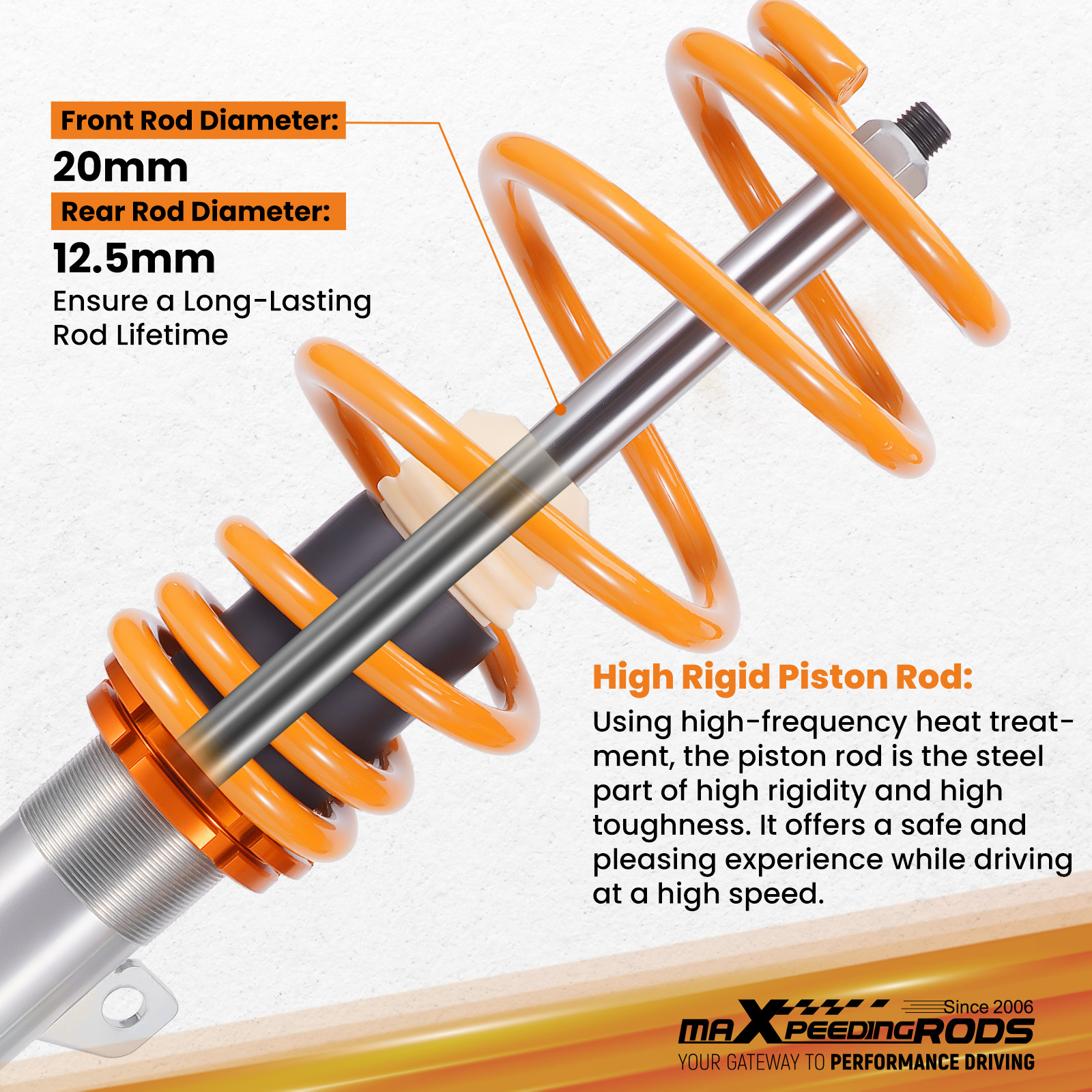 Die MXR-B1 Serie von maXpeedingrods ist ideal für diejenigen, die die alte abgenutzte Federbeine wechseln und gleichzeitig das Handling verbessern möchten. Er ist höhenverstellbar und hält die OE-Fahrqualität weitestgehend aufrecht.