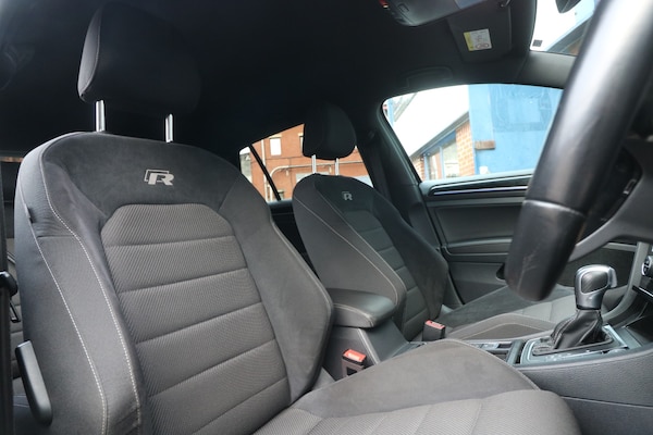 2019 (69) Volkswagen Golf 2.0 TSI R DSG 4Motion Euro 6 (s/s) 5dr. 40000 MILES, FULL VW SERVICE HISTORY, 12 MONTHS MOT, 19"" SPIELBERG ALLOYS, WINTER PACK, HEATED SEATS, REVERSE CAMERA, VIRTUAL COCKPIT, KEYLESS START. BLUE CALIPERS, ALCANTARA LEATHER SPORT SEATS, ELECTRIC FOLDING MIRRORS, ADAPTIVE CRUISE CONTROL,SATTELITE NAVIGATION, BLUETOOTH WITH AUDIO STREAMING, Experience effortless driving with features like front and rear parking sensors, complete with parking assistance, and the convenience of keyless entry. The Composition Media system includes Bluetooth connectivity for seamless audio streaming and calls. The Convenience Pack ensures automatic headlights switch on when needed, while the LED headlights with Dynamic Curve Light illuminate your path with precision. This Golf R offers exhilarating acceleration, reaching 0-60mph in a swift 4.4 seconds, demonstrating its superior performance compared to many other vehicles in its class. PLEASE CALL TO ARRANGE A VIEWING