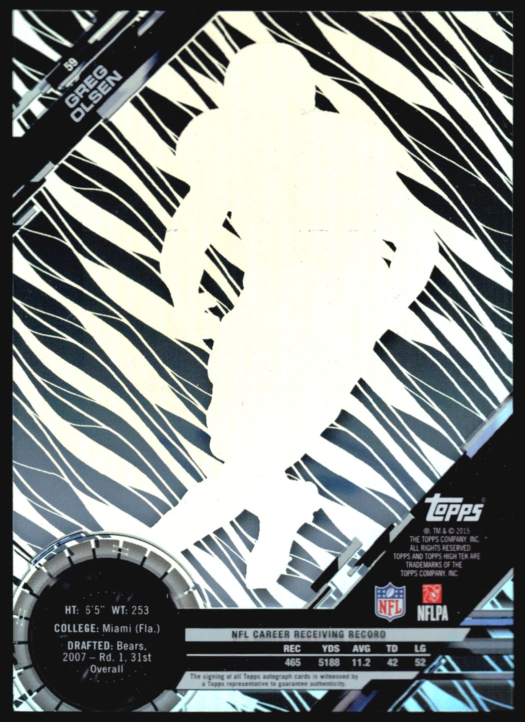 | 2015 Topps Topps High Tek GREG OLSEN Auto #59 | ||||||||||||||||||