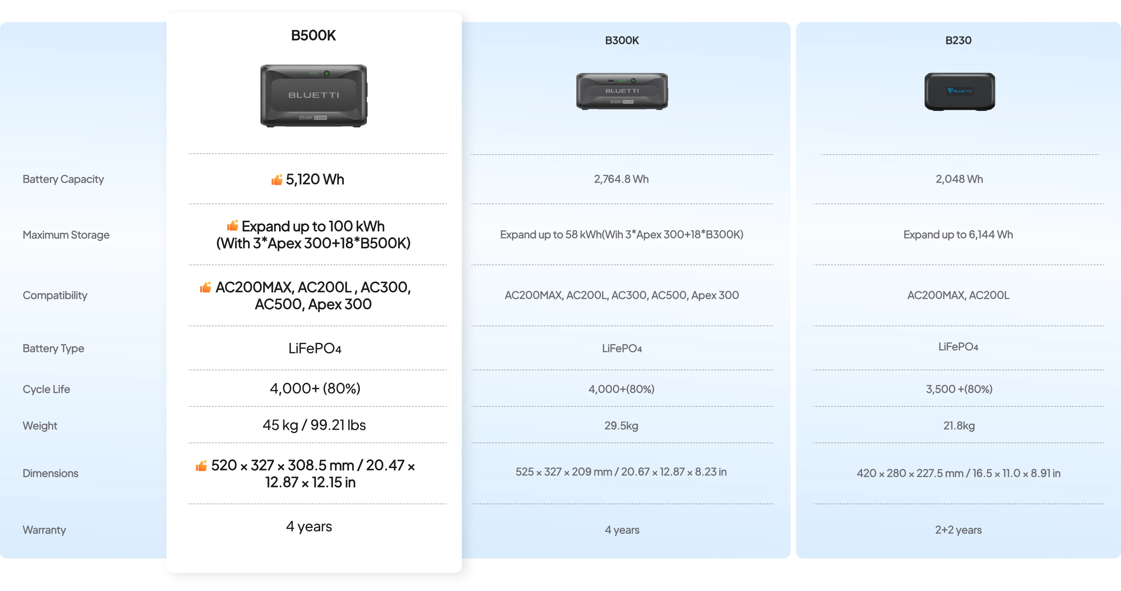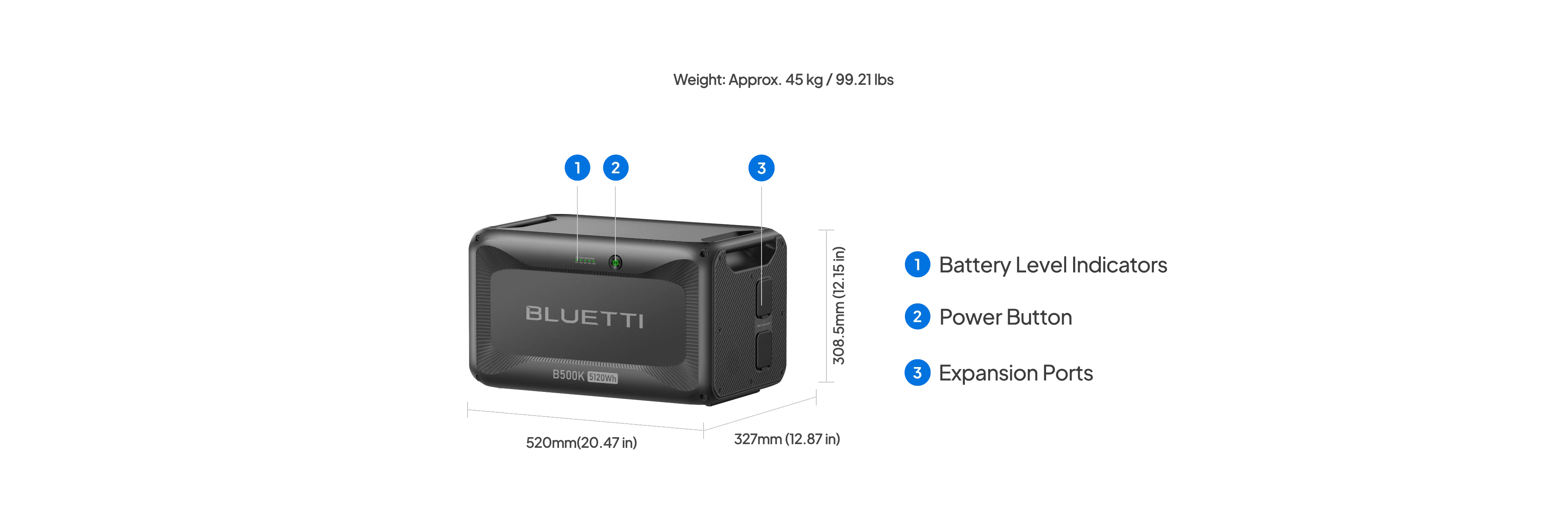The B500K either expands your BLUETTI power stations, or serves as a high-capacity power bank with ecosystem components,