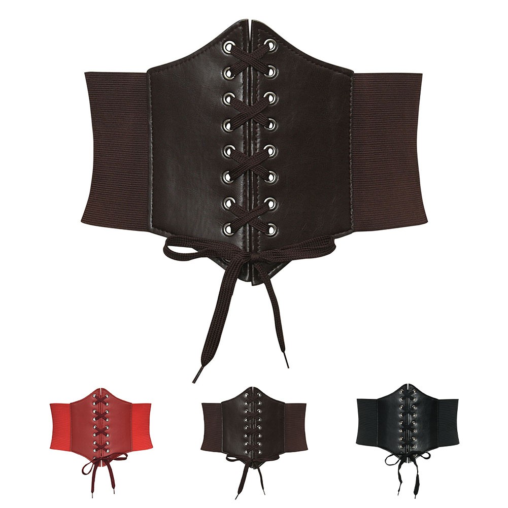 * Caractéristiques de l'article : ceinture gothique en cuir PU, ceinture corset pour femmes, ceintures minceur, vintage, extensible, large, mode féminine, ceinture avec robe pull
