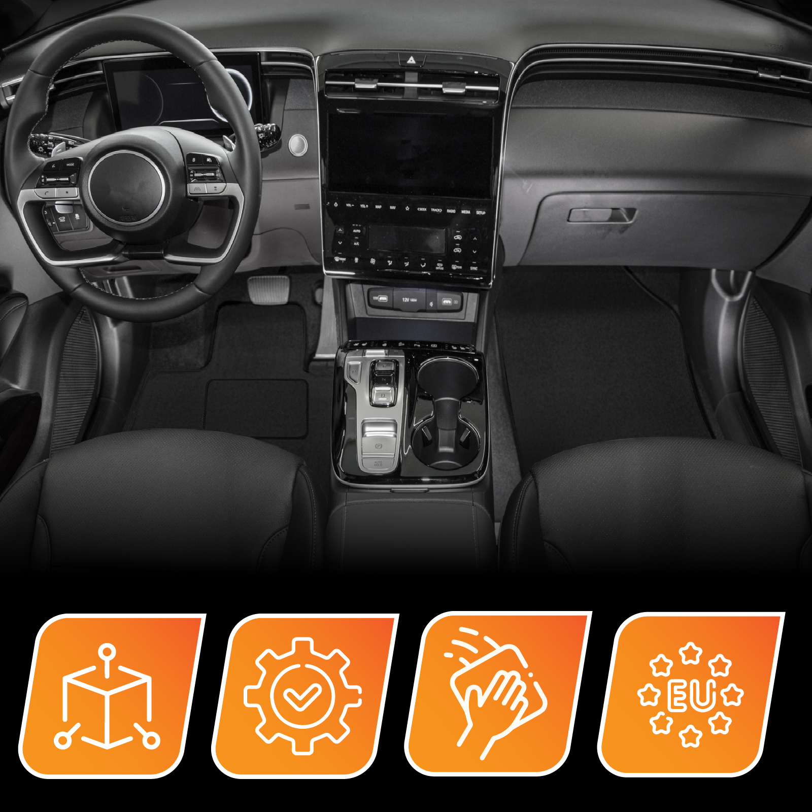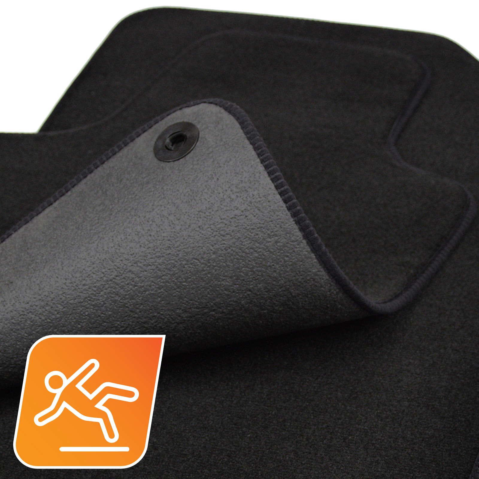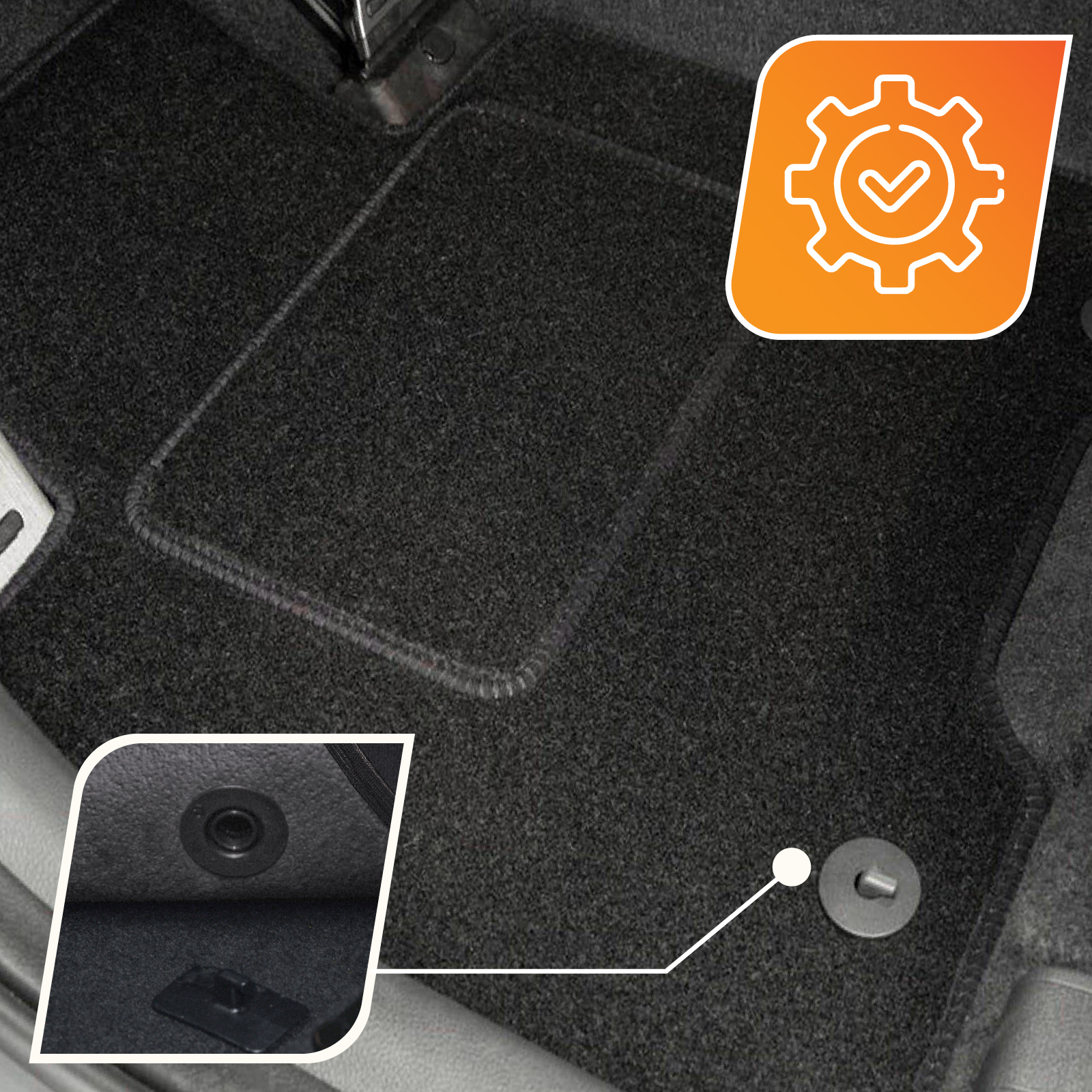 Fassons von Fußmatten sind der genauen Größe des Autobodens angepasst (es sind keine Universalfußmatten). Teil der Fußmatte auf Fahrerseite ist unter Pedalen mittels Gummi- bzw. Veloursvorleger befestigt. Für bessere Befestigung der Matte gibt es bei uns auch Fixiermittel zur Verfügung.