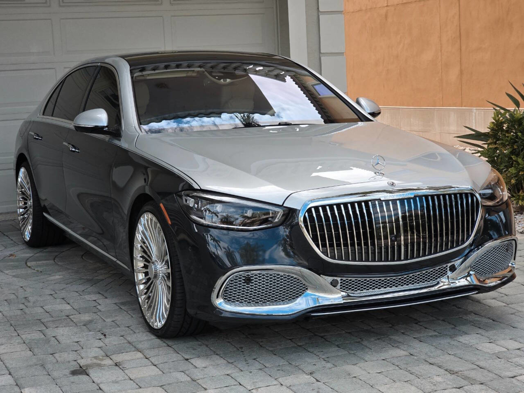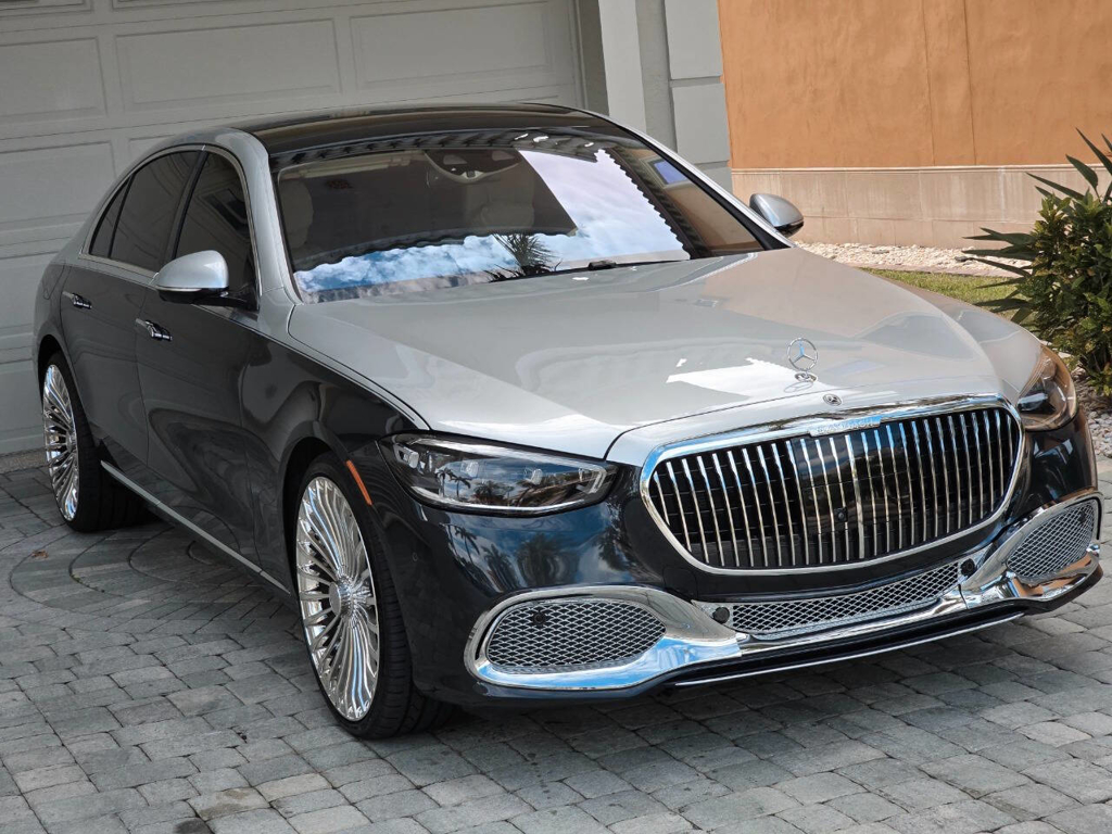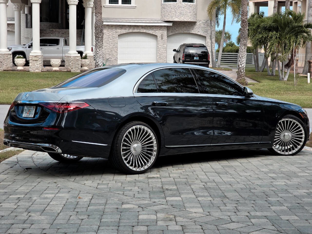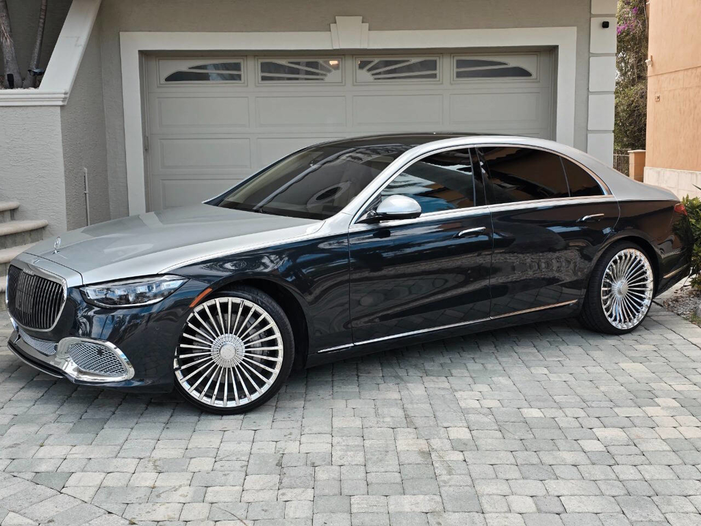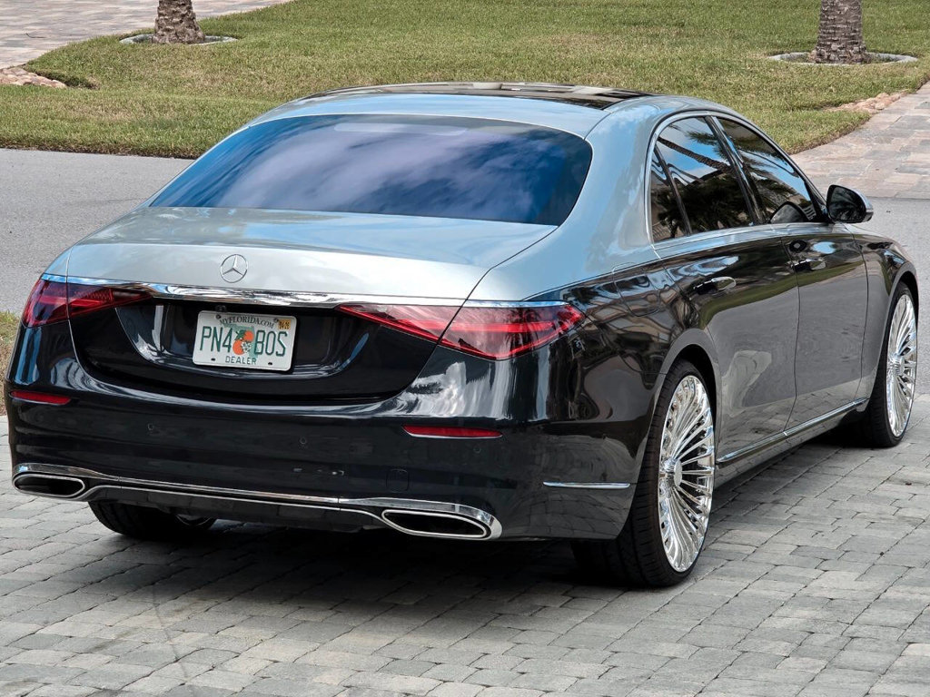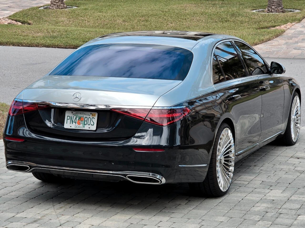 This 2022 Mercedes-Benz S580 4MATIC stands as a rolling testament to both luxury innovation and bespoke craftsmanship. Visually stunning from every angle, this executive sedan has undergone phenomenal customization work to deliver a striking two-tone finish—factory Anthracite Blue Metallic across the lower body and a rich Silver upper treatment that perfectly complements the vehicle’s elegant proportions. This tailored look is accentuated by upgraded 22-inch wheels with brand-new tires, and a cleanly debadged rear end for a more refined, minimalist aesthetic. The result is a commanding and unique road presence that is both timeless and modern. Step inside, and the cabin presents an equally captivating narrative. This particular S580 is optioned with the stunn