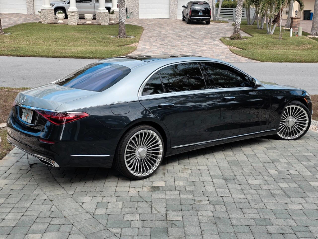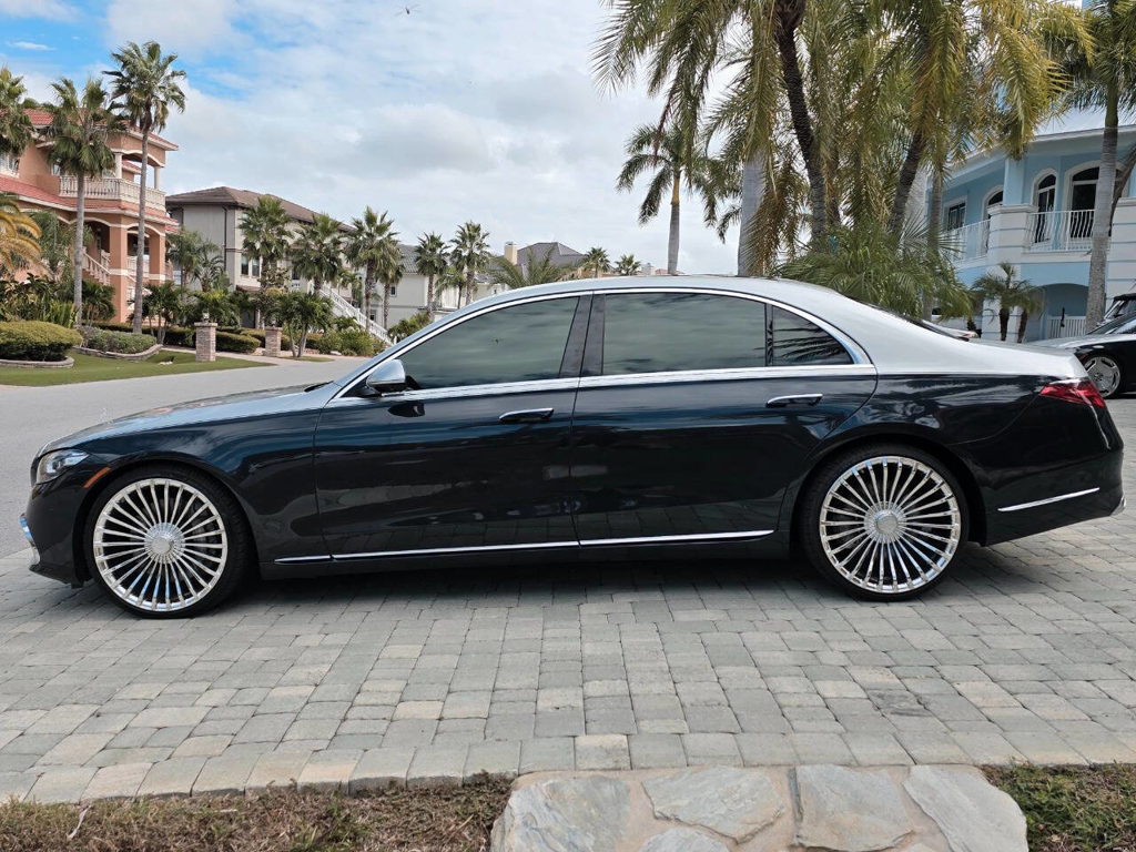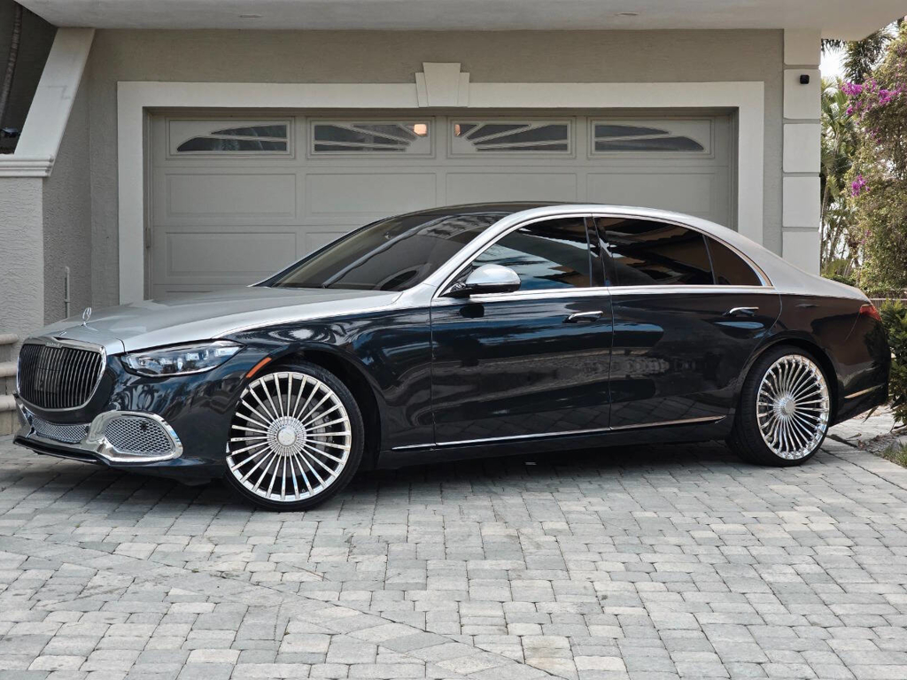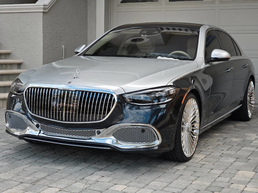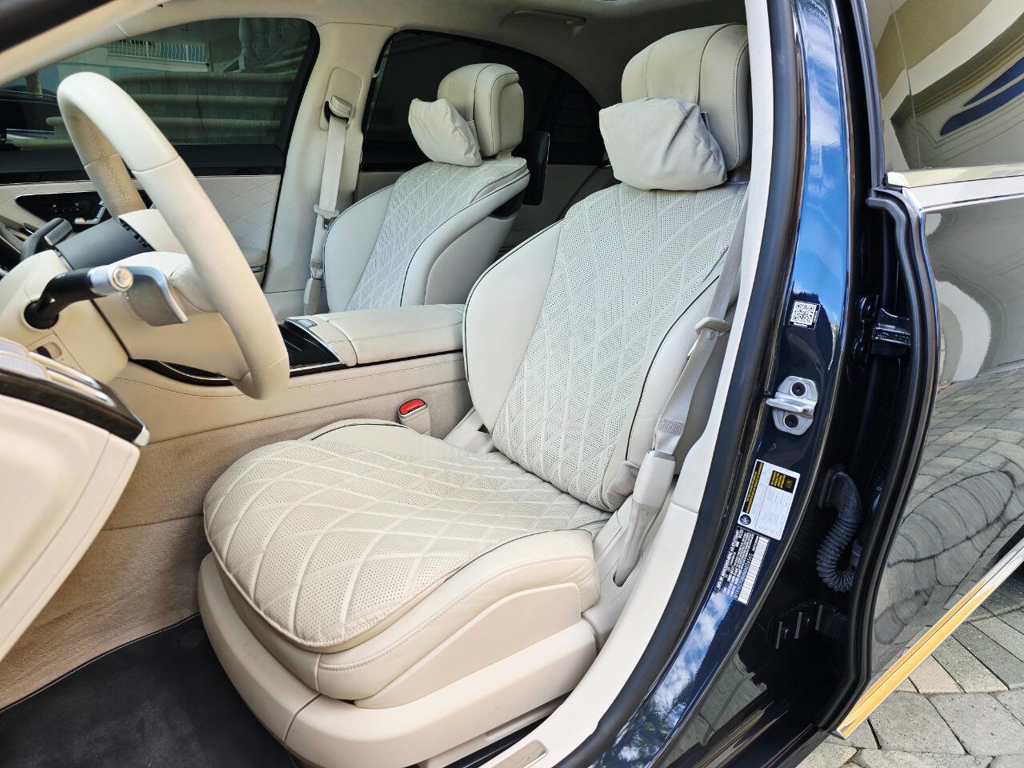 This 2022 Mercedes-Benz S580 4MATIC stands as a rolling testament to both luxury innovation and bespoke craftsmanship. Visually stunning from every angle, this executive sedan has undergone phenomenal customization work to deliver a striking two-tone finish—factory Anthracite Blue Metallic across the lower body and a rich Silver upper treatment that perfectly complements the vehicle’s elegant proportions. This tailored look is accentuated by upgraded 22-inch wheels with brand-new tires, and a cleanly debadged rear end for a more refined, minimalist aesthetic. The result is a commanding and unique road presence that is both timeless and modern. Step inside, and the cabin presents an equally captivating narrative. This particular S580 is optioned with the stunn