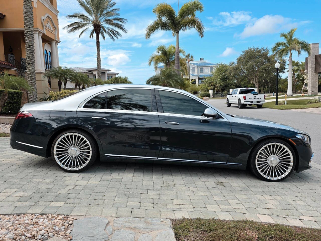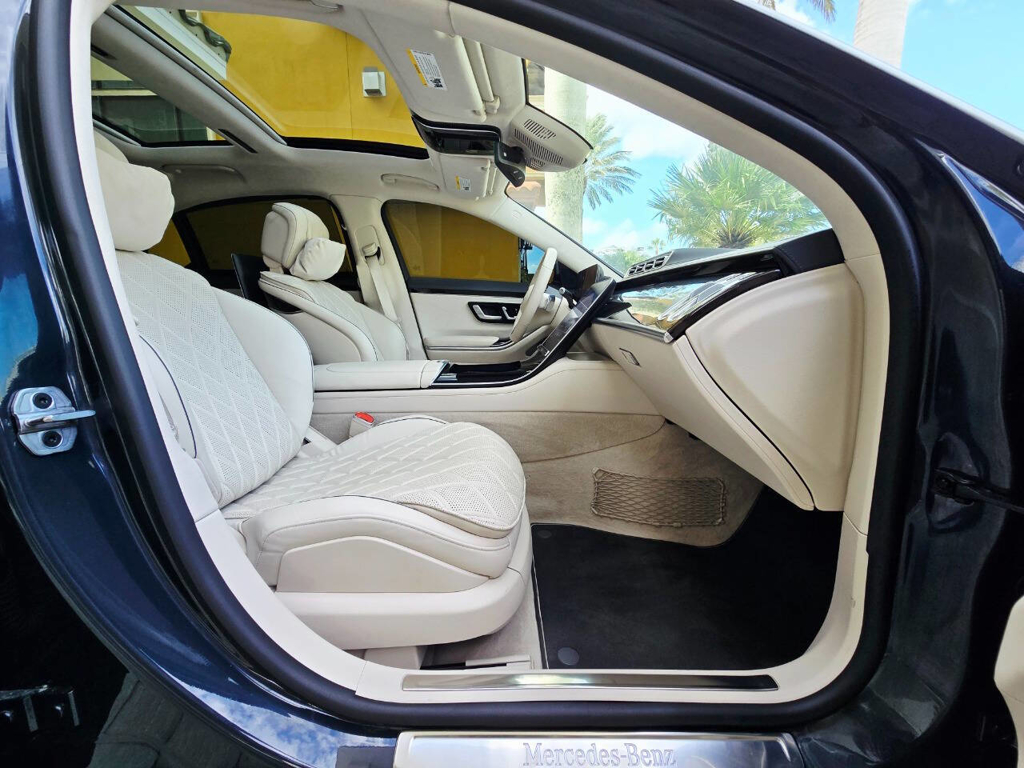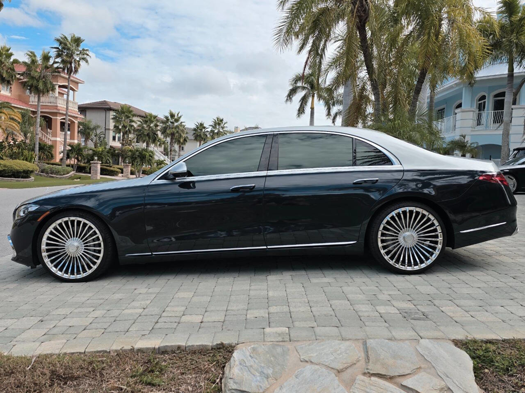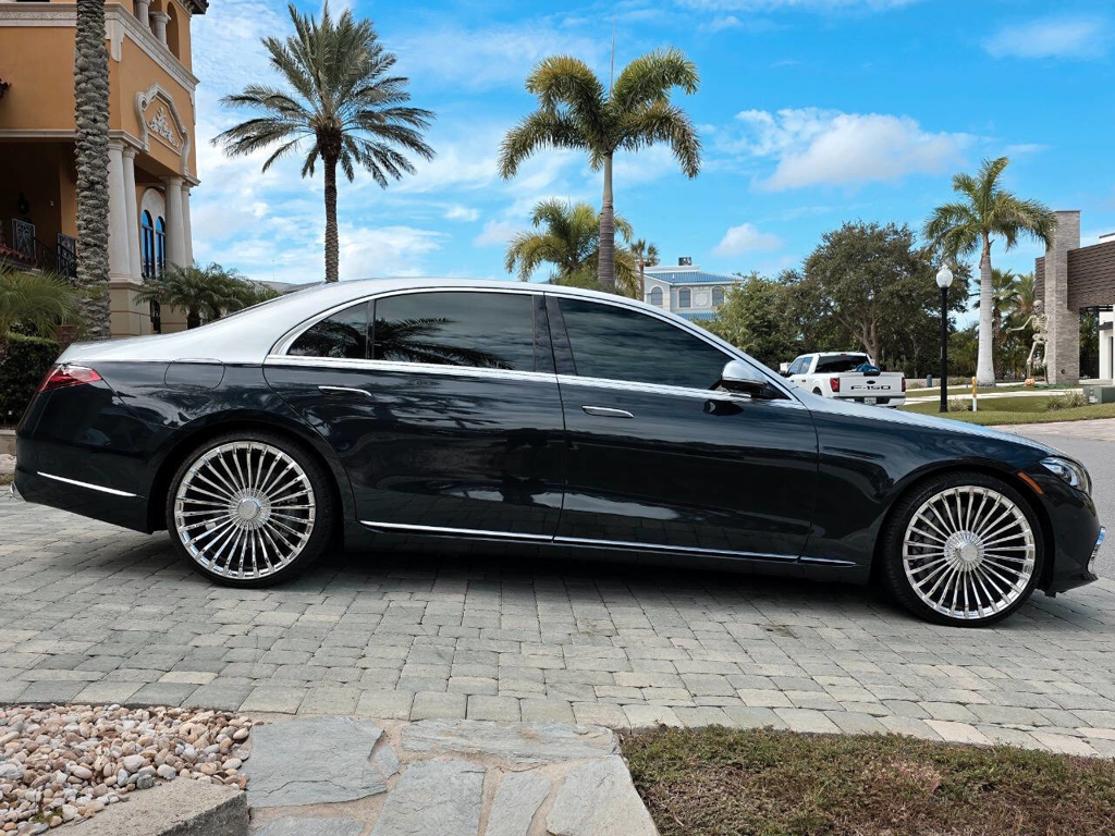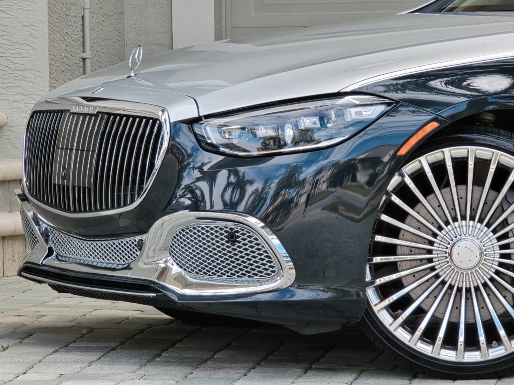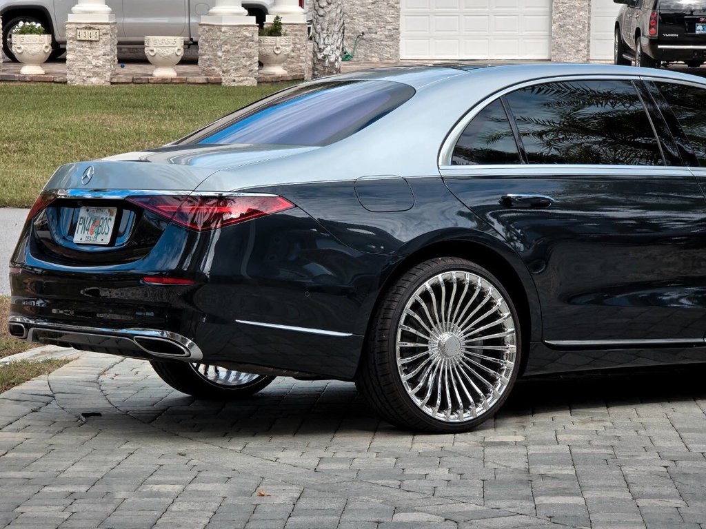This 2022 Mercedes-Benz S580 4MATIC stands as a rolling testament to both luxury innovation and bespoke craftsmanship. Visually stunning from every angle, this executive sedan has undergone phenomenal customization work to deliver a striking two-tone finish—factory Anthracite Blue Metallic across the lower body and a rich Silver upper treatment that perfectly complements the vehicle’s elegant proportions. This tailored look is accentuated by upgraded 22-inch wheels with brand-new tires, and a cleanly debadged rear end for a more refined, minimalist aesthetic. The result is a commanding and unique road presence that is both timeless and modern. Step inside, and the cabin presents an equally captivating narrative. This particular S580 is optioned with the stunn