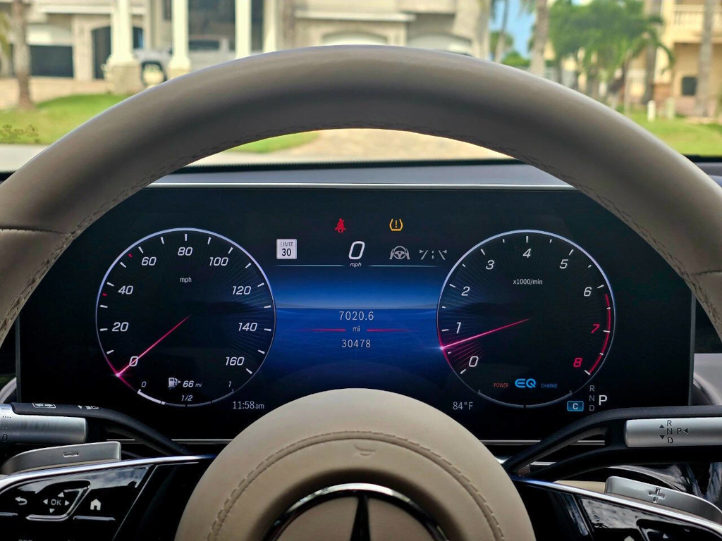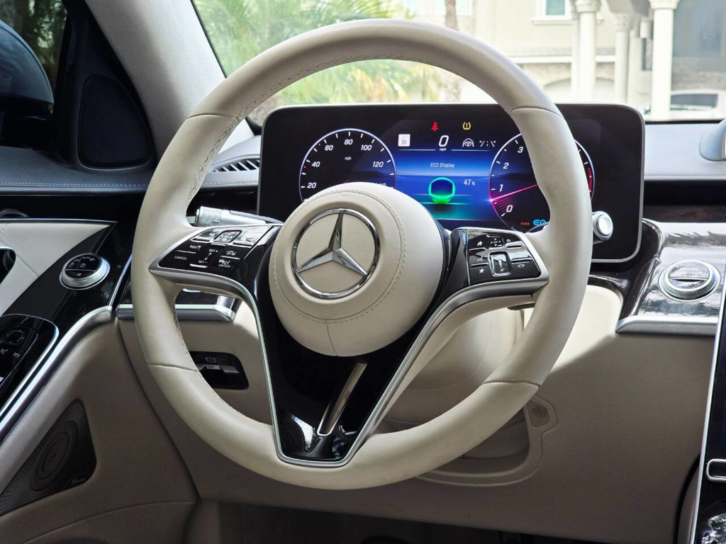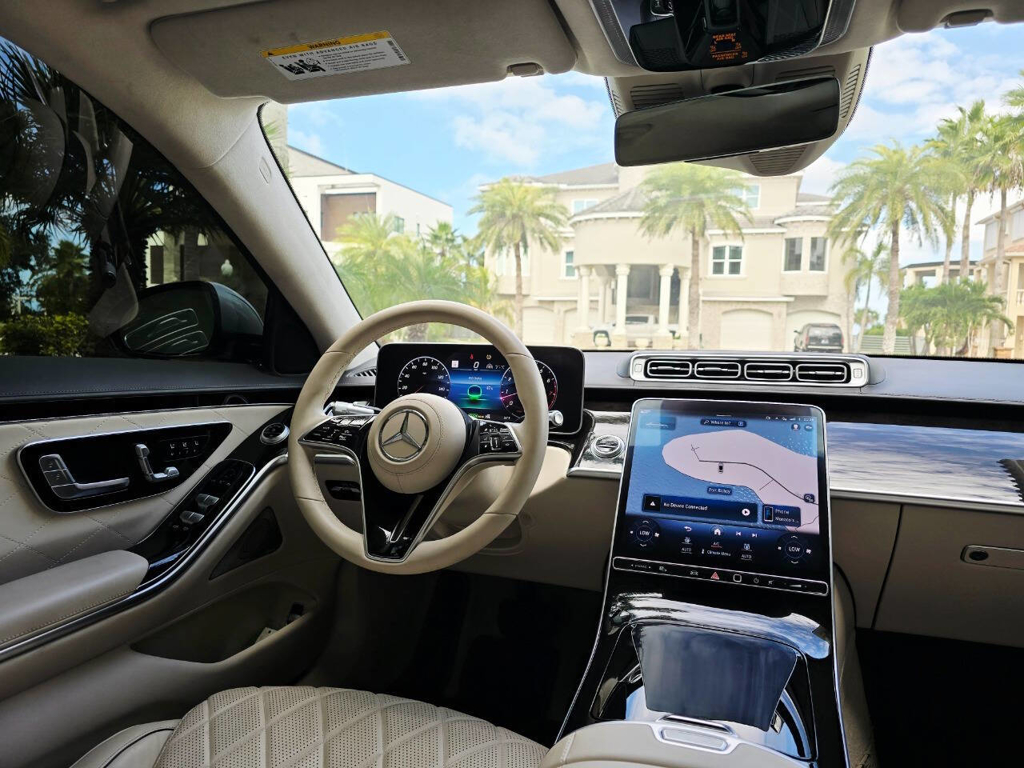 Performance matches the luxury in equal measure. Under the hood is a 4.0-liter Biturbo V8 paired with a seamless 9-speed automatic transmission and Mercedes-Benz’s 4MATIC all-wheel-drive system. Producing 496 horsepower and 516 lb-ft of torque, aided by EQ Boost mild-hybrid technology, this full-size sedan is capable of accelerating from 0 to 60 mph in just over 4 seconds. With optional 10-degree rear axle steering, the car is surprisingly agile in city traffic and supremely composed on the highway, making it a true pleasure to drive or be driven in.