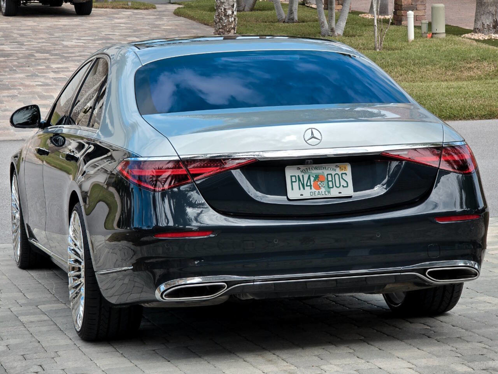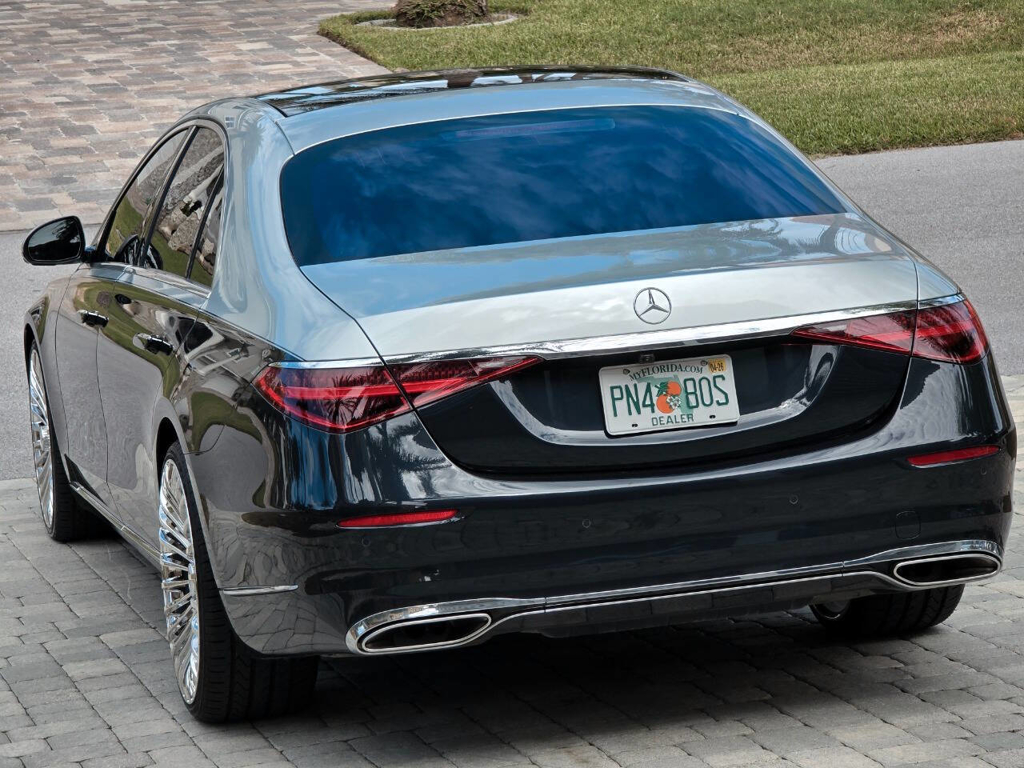 This 2022 Mercedes-Benz S580 4MATIC stands as a rolling testament to both luxury innovation and bespoke craftsmanship. Visually stunning from every angle, this executive sedan has undergone phenomenal customization work to deliver a striking two-tone finish—factory Anthracite Blue Metallic across the lower body and a rich Silver upper treatment that perfectly complements the vehicle’s elegant proportions. This tailored look is accentuated by upgraded 22-inch wheels with brand-new tires, and a cleanly debadged rear end for a more refined, minimalist aesthetic. The result is a commanding and unique road presence that is both timeless and modern.