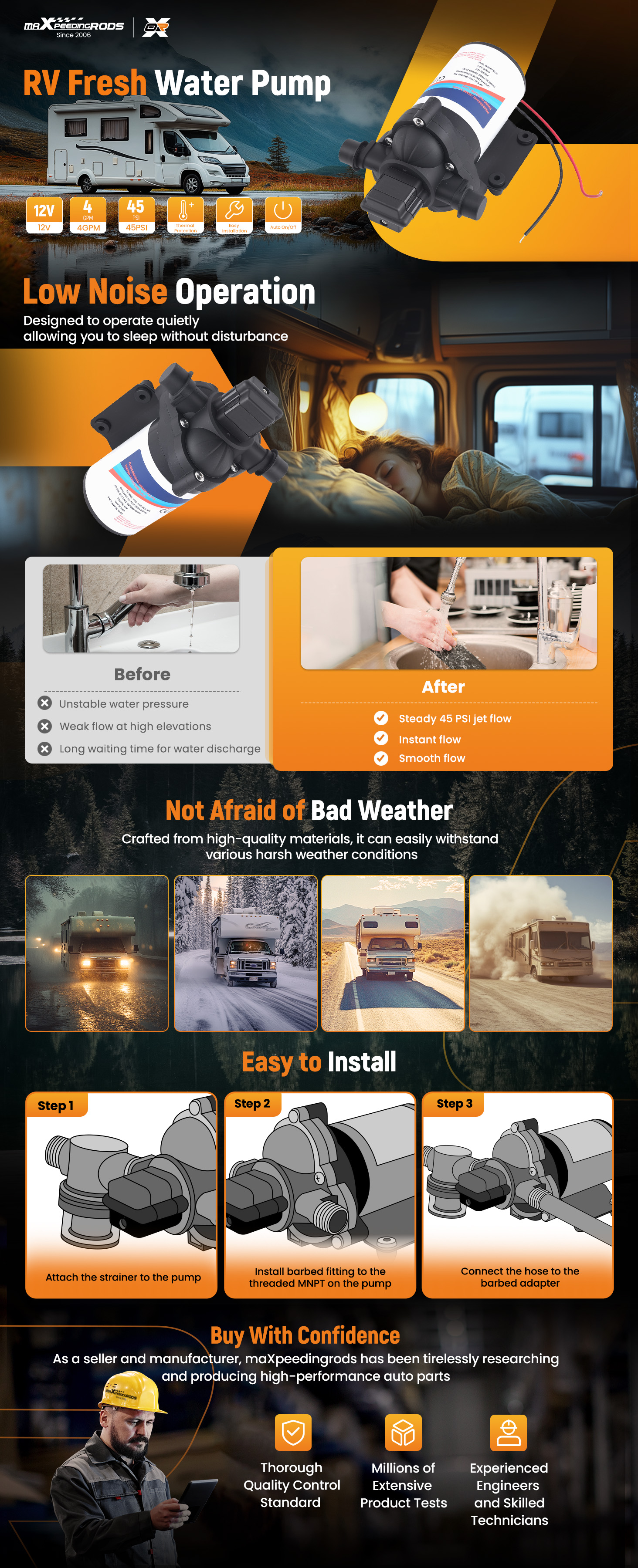 for RV, boat, yacht, agricultural irrigation, backyard pumping, car washing, etc.