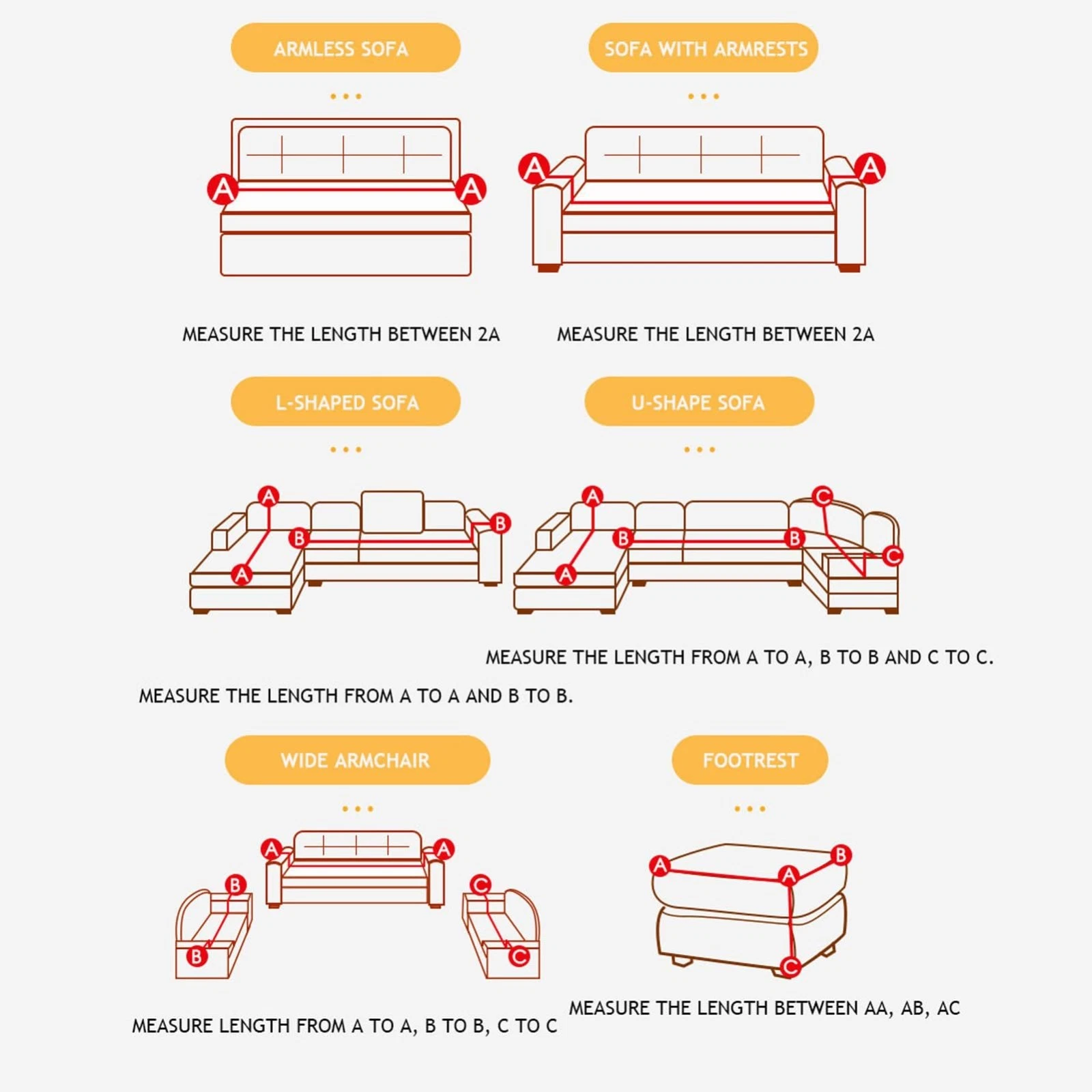 Special Feature: Anti Slip, Stretch Fit, Washable Care Instructions: Machine Washable Size: (1-Seater): for Sofa with a Length of 90-130 cm (2-Seater): for Sofa with a Length of 140-170 cm (3-Seater): for Sofa with a Length of 180-230 cm (4-Seater): for Sofa with a Length of 230-300 cm Sectional or Corner sofa must need to buy 2 sofa covers, the size depend on the length of line AA and BB or CC For example: AA=200cm, BB=160cm, you can buy 1PC 3-seater sofa cover and 1PC 2-seater sofa cover. (1inch=2.54cm) ![]() ![]() ![]() Package Contents: