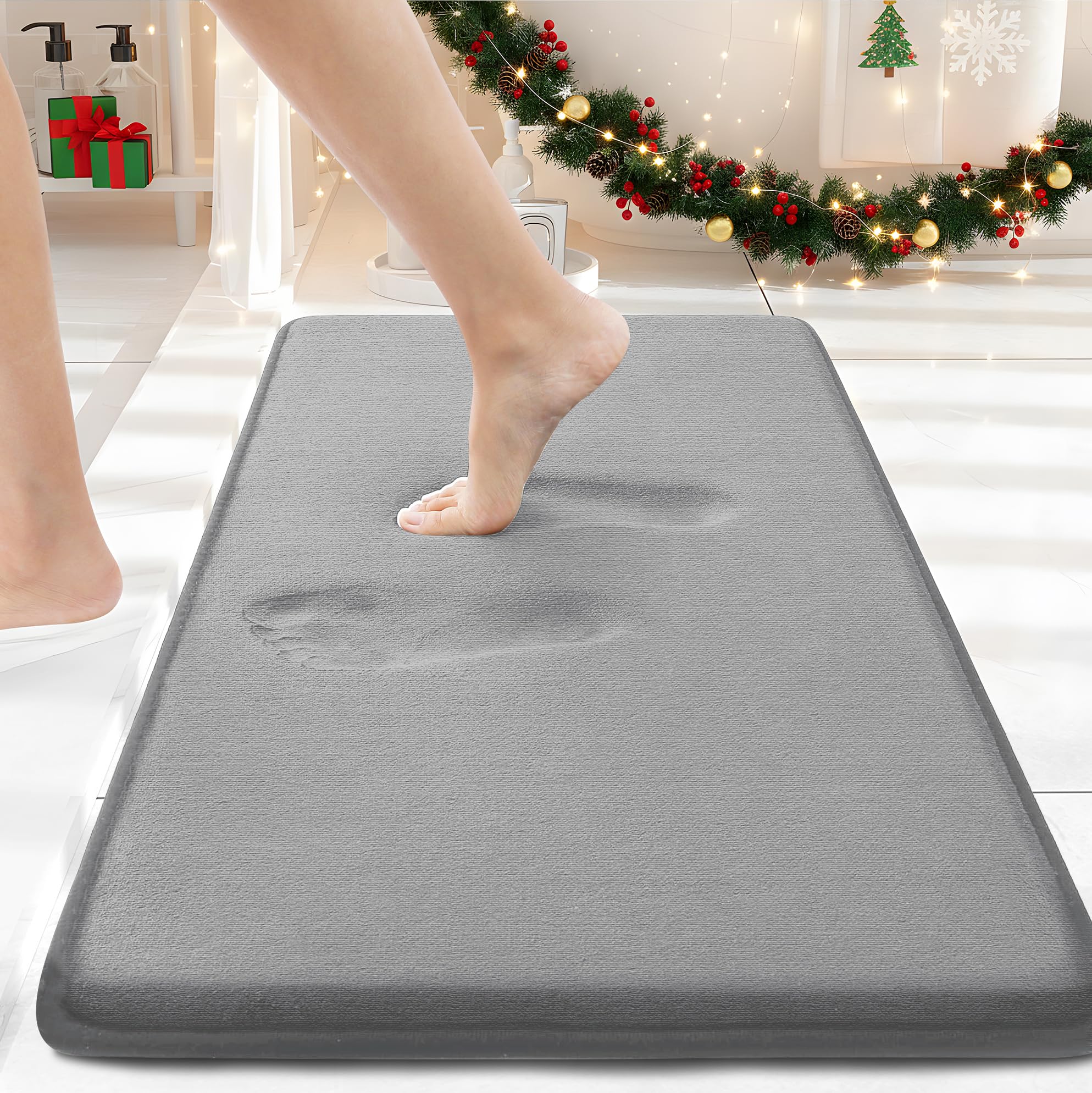 Memory Foam Bath Mat 30x20, Extra Soft and Absorbent Bathroom Mats, Non Slip Washable Carpet for Floor, Shower and Tub, Grey