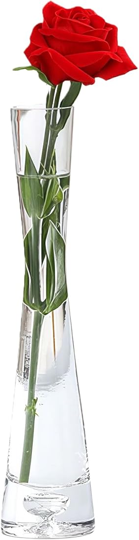 20cm Tall Clear Glass Flower Vase Single Stem Bud Vase for Home Office Wedding Decor Modern Minimalist Centerpiece