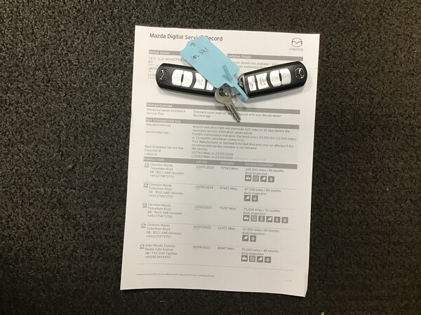 * FULL MAZDA SERVICE HISTORY+ AA INSPECTION CARRIED OUT ** This 2018 Mazda CX-5 2.2 SKYACTIV-D Sport Nav+ SUV with 102333 miles on the clock and a Diesel engine is a reliable choice for anyone in need of a spacious vehicle, especially with its 5 seats and 5 doors. Its MOT is valid until 20/09/2026, and it is ULEZ compliant, offering peace of mind for city driving. The car comes with 19in Alloy Wheels, Electrically Adjustable and Heated Door Mirrors, Electric Windows, and an Emergency Tyre Repair Kit, making it a comfortable and practical option. The body coloured bumpers give it a sleek look, and its Euro 6 engine ensures it meets emissions standards. This well-maintained SUV is ready for any adventure and is sure to provide many more miles of reliable and efficient driving. Features Include: , 19in alloy wheels - metallic, bumpers - body coloured, door mirrors - electrically adjustable - heated - power folding with integrated indicator lights, electric windows - front and rear with one-touch auto down - up, emergency tyre repair kit, privacy glass - rear and rear side windows, spoiler - rear roof body coloured, 7in colour touch screen display, aux and usb input, integrated bluetooth, luggage compartment - power outlet, mazda navigation system - european mapping with alternative route calculations - point of interest search and 3-years free map updates, premium bose centrepoint surround sound system, shark fin antenna, usb - ipod connectivity, abs - anti lock braking system, advanced smart city brake support, auto door locking, dual front airbags, dynamic stability control with traction control system, electronic parking brake with auto-disengage function, front passenger airbag cut-off switch, front side airbags, front and rear curtain airbags, hill hold assist, isofix child seat anchorage for outer rear seats, lane keep assist with lane departure warning system, remote central locking with deadlocking, scr - secondary collision reduction, seatbelt reminder for front and rear, seatbelts - front - 3 point - elr x 2 with pre-tensioners, seatbelts - rear - 3-point - elr, smart brake support with forward obstruction warning, smart remote keyless entry system, thatcham category 1 alarm and immobiliser, wipers - rear adjustable speed with intermittent, advanced blind spot monitoring with rear cross traffic alert, front and rear parking distance sensors, mazda radar cruise control, meter set display - window projection colour active driving display with traffic