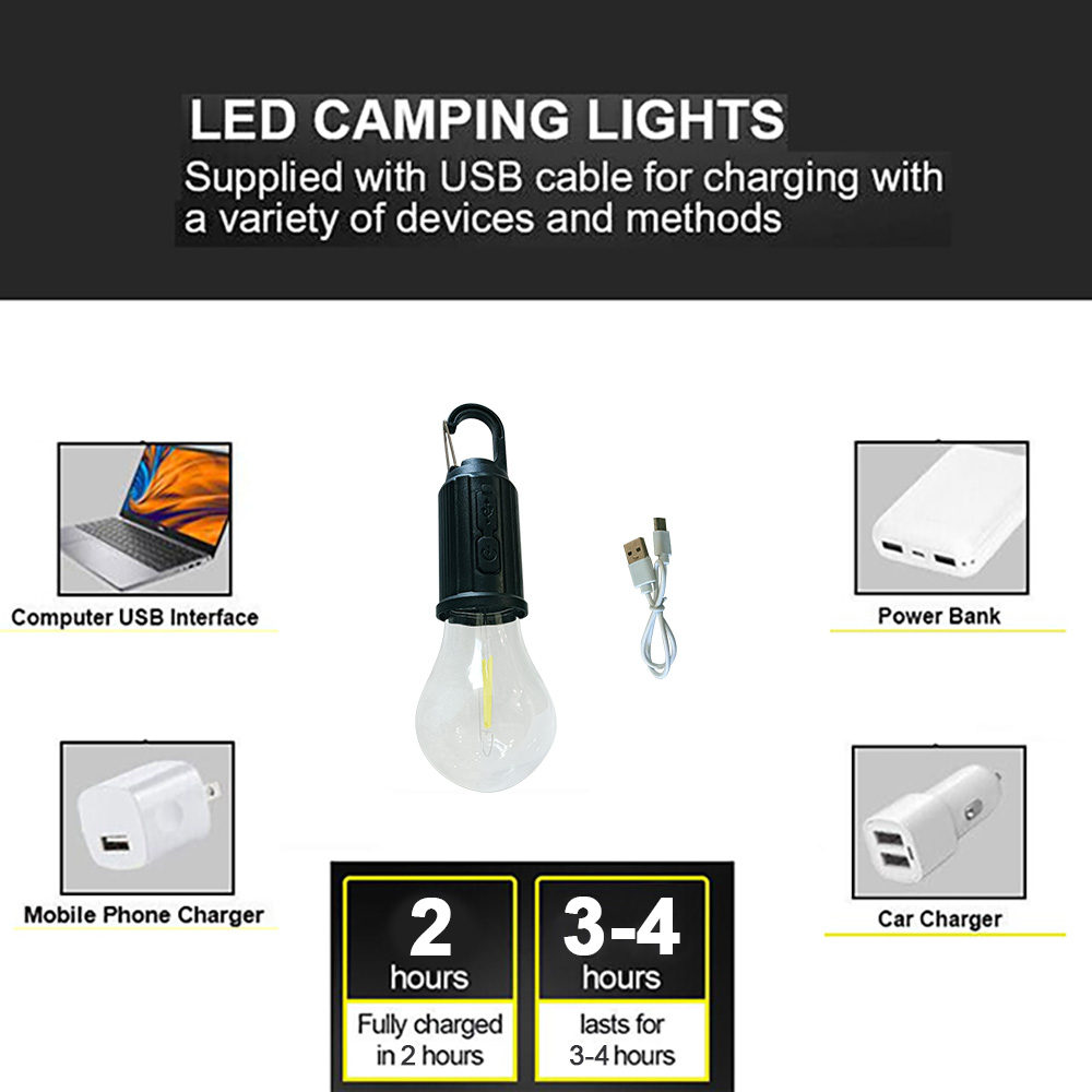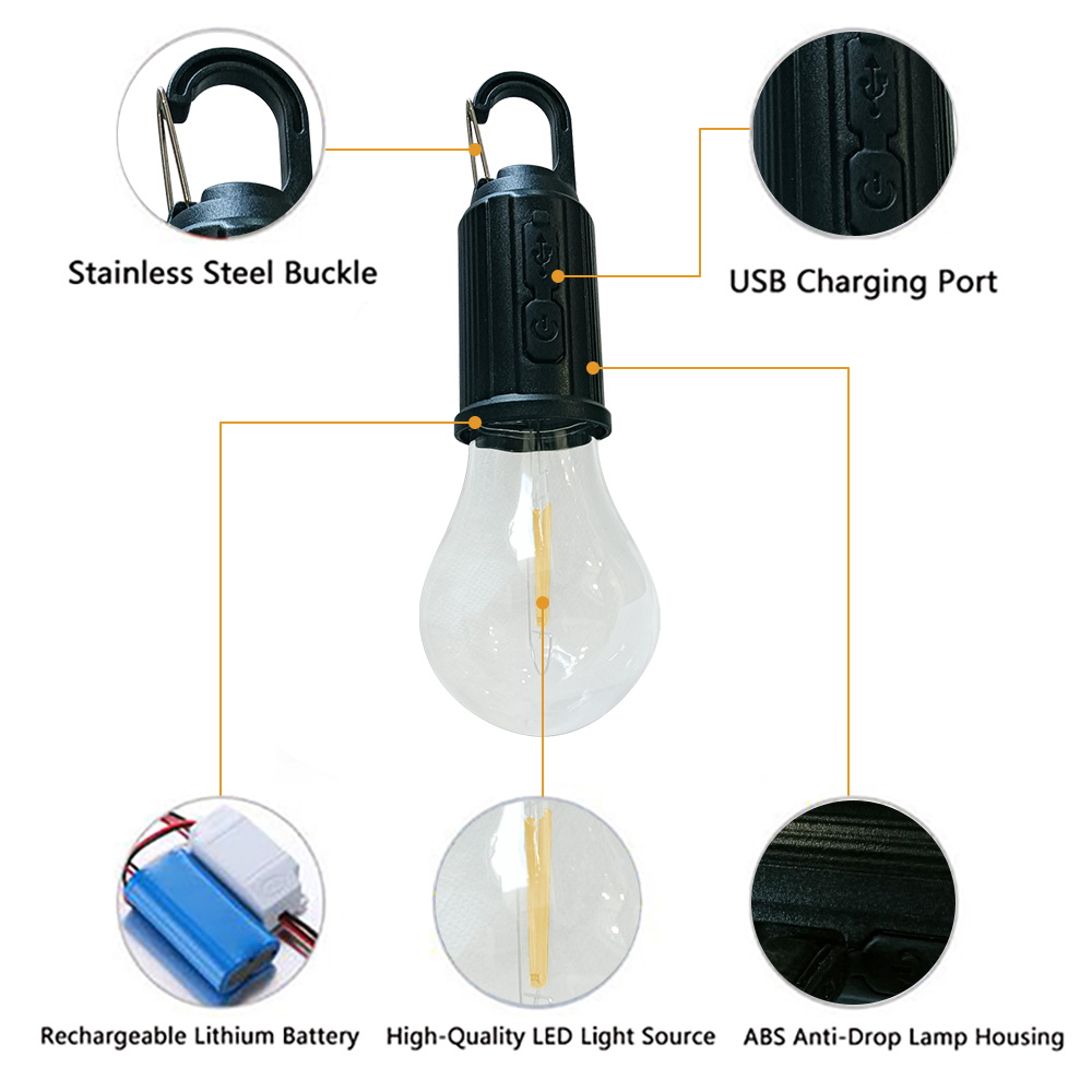 1. Rechargeable light bulb, night market stall, power outage emergency, outdoor adventure.