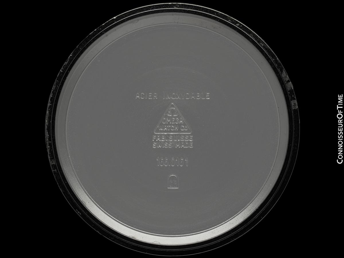 Marquages du boîtier (à l'intérieur) : Omega Watch Co, Swiss Made, Acier Inoxydable, 166.0161