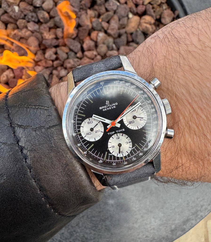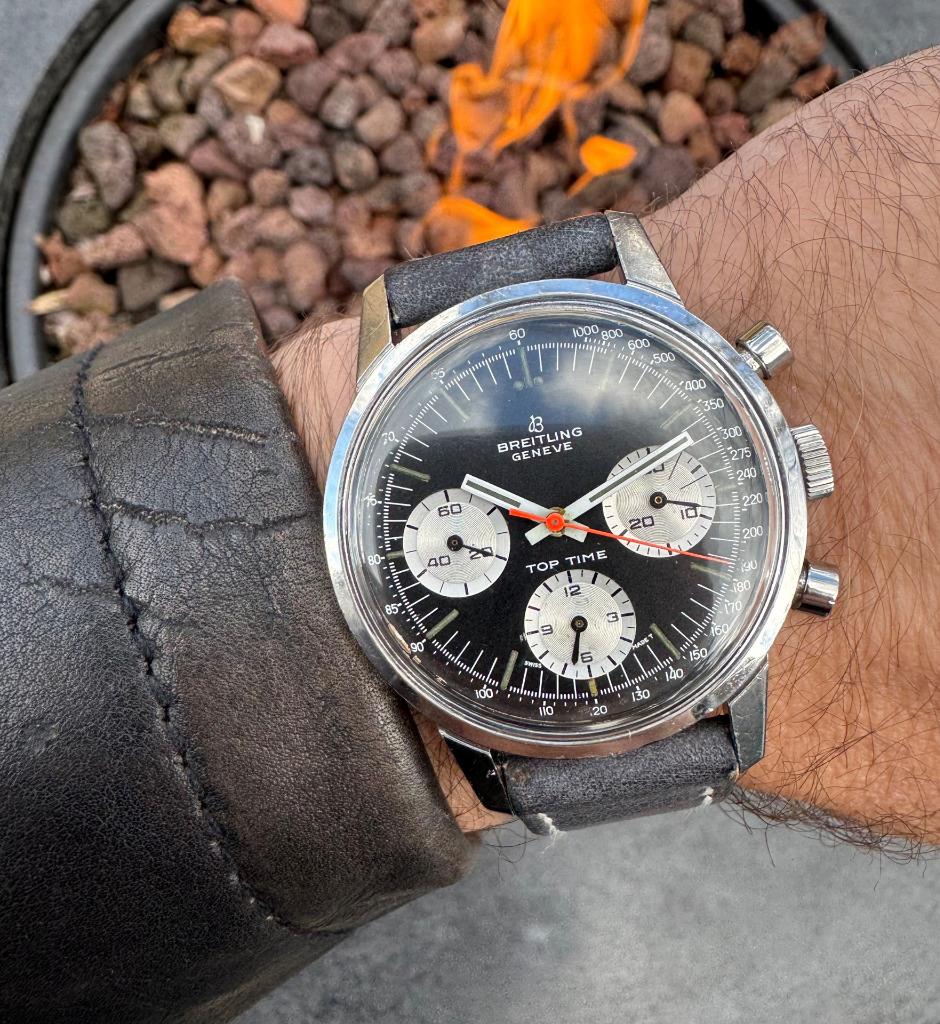 1969 Breitling Top Time Vintage "Jim Clark" Panda Dial Chronograph Watch - acier inoxydable