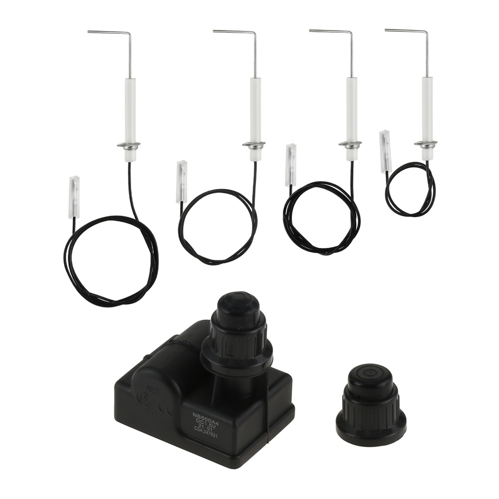 • 1, Fits Blackstone 28 Inch Griddle only include 4 pieces of electrode spark.  2, Easy to install and just replace each electrode on your current burner fixing plate and other side connect the ignitor.  3, The Igniter Cap need to take off and insert and AA battery inside to let it start work.  4,The rated output voltage of this igniter: the minimum output voltage is 12 kV. Use the life cycle greater than 30000 times. Min ambient temp:--4℉, Max Operating ambient temp: 185℉.  5, Include one igniter and 4 Pieces of Spark Electrode with Cable with different Length for 4 burners.  6, AA battery is required (NOT INCLUDED).