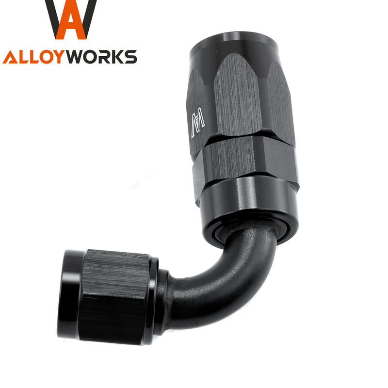 ALLOYWORKS Performance Products -6AN 90 degree Hose End / Oil Fuel / reusable / Swivel 6 AN Fitting -6 BLACK