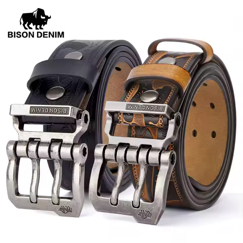 Elevate your casual look with this **BISON DENIM Men's Belt**, crafted from high-quality **split cowhide genuine leather**. The belt features a stylish **retro pin buckle** that is durable, finely brushed, and boasts smooth, rounded edges, ensuring comfort and longevity. Its **vintage/classic style** makes it the perfect accessory for pairing with jeans or casual trousers.