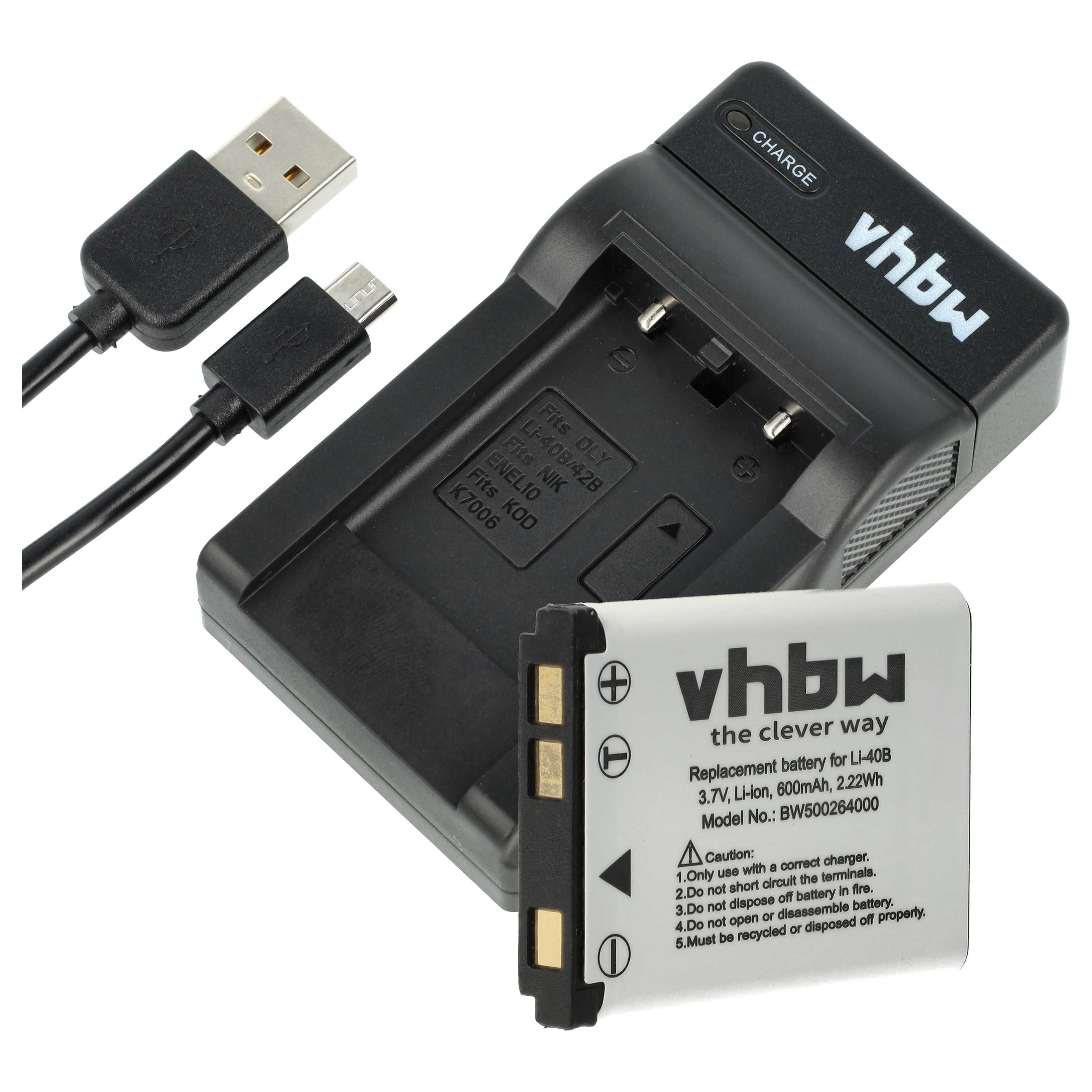 vhbw Set de carga de 3 uds. (1x base de carga, 1x cable de carga, 1x batería) para Polaroid T831, T730, T1455, T370, Q20, Q40, T1032 cámara