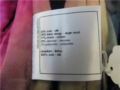 - Fabric: 45% Silk, 26% Virgin Wool, 17% Cotton, 10% Polyester, 2% Polyester
