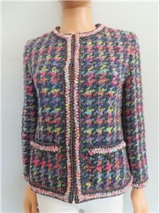 - Features: Houndstooth, Metallic, Braided Trim