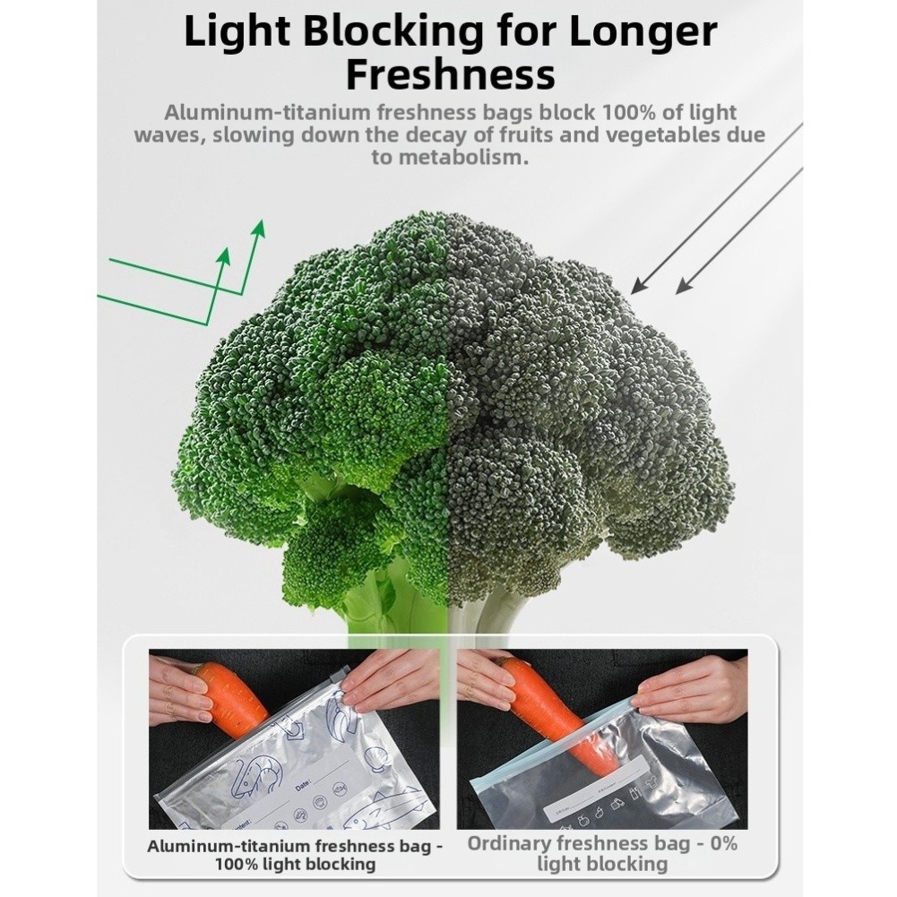 * Conception scellable : la fonction de fermeture à glissière fournit une étanchéité à l'air, évite les fuites et les déversements tout en gardant vos aliments frais pendant de plus longues périodes, protège contre les odeurs, l'air et l'exposition à l'eau.