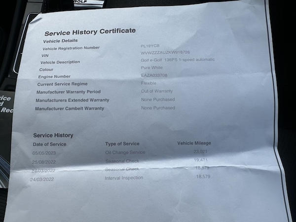 2019 Volkswagen Golf 35.8kWh e-Golf Hatchback 5dr Electric Auto (136 ps) Hatchback ELECTRIC Automatic