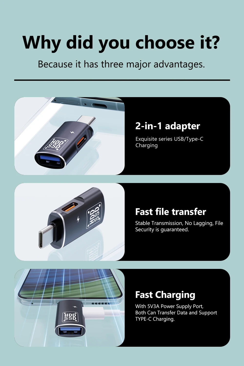 ✅ Dual interface design - supports both USB 3.0 and Type-C female ports, meeting various connection requirements