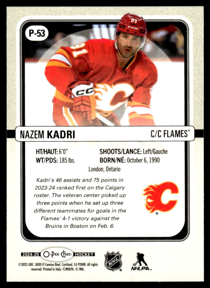 | 2024-25 O-Pee-Chee Premier Nazem Kadri Calgary Flames #P-53 | ||||||||||||||||