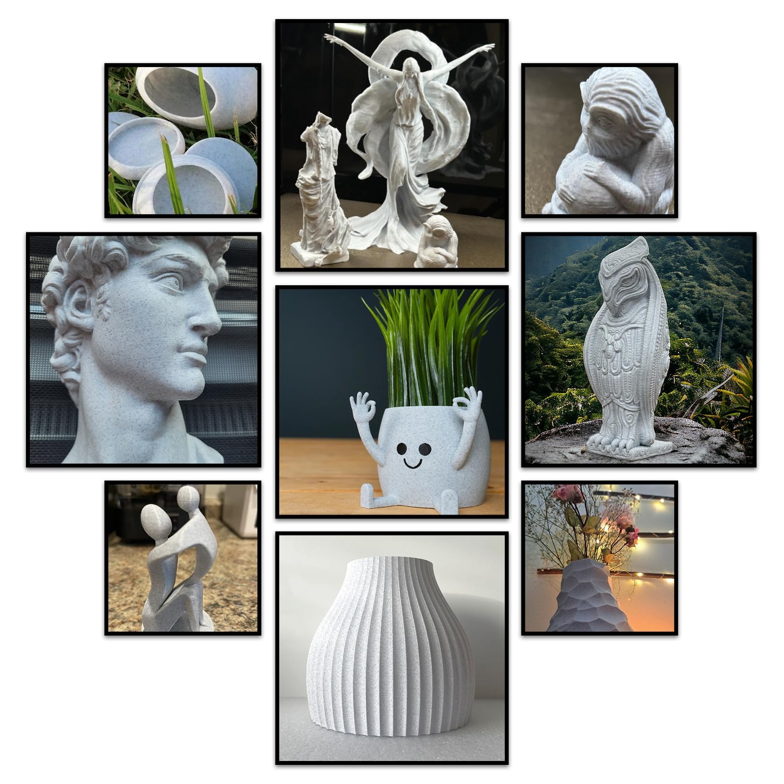 Geeetech Marmor PLA Filament Geeetech Marmor 3D Drucker Filament ist ein Stein PLA Filament. Dieses neu eingeführte Filament kann ein realistisches, steinartiges Aussehen erzielen, das perfekt für den 3D-Druck von Büsten, Skulpturen oder Baumodellen ist. Die Hinzufügung von ultrafeinen Marmorpartikeln verleiht den Drucken eine lebendige Marmortextur und verbirgt fast vollständig Schichtlinien, was einen glatten, premium-marmorähnlichen Look bietet. |
