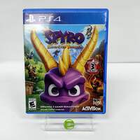 Spyro Reignited Trilogy (Sony PlayStation 4 PS4, 2018) Items included in this sale: Spyro Reignited Trilogy (Sony PlayStation 4 PS4, 2018)Case *Please note, if it is not listed it is not included - such as power cables or other accessories. Specifications: Collection Video Game Platform Sony PlayStation 4 PS4 Game Name Spyro Reignited Trilogy Publisher Activision Genre Action & Adventure Rating E10+ - Everyone 10+ Release Year 2018 Graded? No Case/Box? Yes Manual? No Inserts? No Downloadable Content? No Condition Good UPC 047875882393 Cosmetic condition: This disc game is in excellent pre-owned condition! There is little, if any, noticeable wear from use! The case/box is in good condition with some light to moderate wear from use including some small stains, creases, or tears. Please view our close up photos, as these are taken of the actual item being offered for sale. Functionality condition: This game has been fully tested and works great!