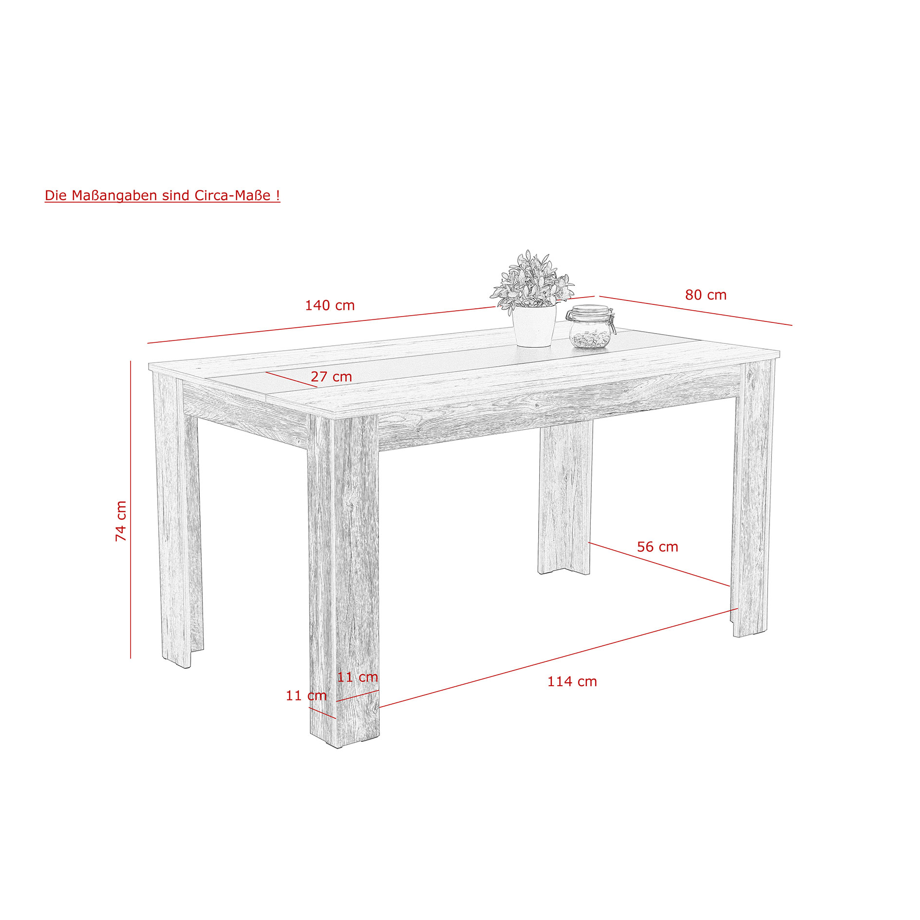 Der etwa 140 Zentimeter breite Esstisch bietet Ihnen viel Platz zum Dinieren mit Ihren Freunden oder Ihrer Familie. Er präsentiert sich im angesagten Industrial Style und versprüht somit ein modernes Ambiente in Ihrem Essbereich und kann dank seiner Farbgebung mit den unterschiedlichsten Einrichtungen kombiniert werden.