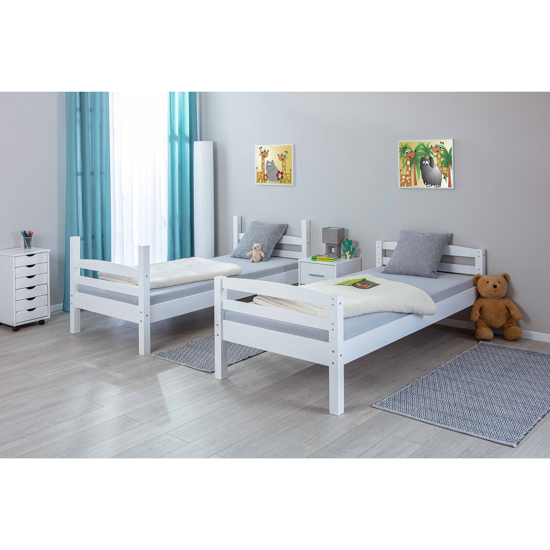 Hier bekommst du nicht nur ein Bett, sondern gleich zwei! Dank der beiden Lattenroste und der Möglichkeit, die Etagenbetten in zwei Einzelbetten umzufunktionieren, hast du die Freiheit, das Bett nach deinen Bedürfnissen anzupassen. Die mitgelieferte Leiter und die Absturzsicherung sorgen dafür, dass du oder deine Liebsten sicher und bequem ins obere Bett gelangen und nachts ruhig schlafen können. Das Bett ist äußerst nachhaltig, dank der Möglichkeit, es in zwei Einzelbetten umzufunktionieren. So kannst du das Bett auch im fortgeschrittenen Alter der Kinder noch benutzen. Aus Kiefern Massivholz gefertigt, ist die natürliche Maserung des Holzes durch die Lackierung hindurch sichtbar.