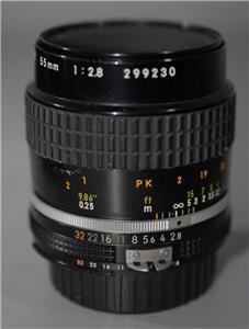 This is a nice Nikon 55mm f2.8 Micro Ais manual focus Macro lens in excellent++ condition. The lens only shows some very minor wear and the glass optics are also clean with no scratches, marks, fungus or dirt. THE FOCUS RING IS A BIT STIFF, otherwise it still focuses properly and the aperture also works properly.