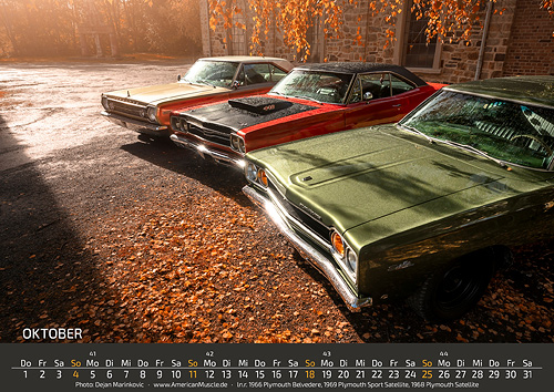 | Oktober | '66 Plymouth Belvedere / '69 Sport Satellite / '68 Satellite |