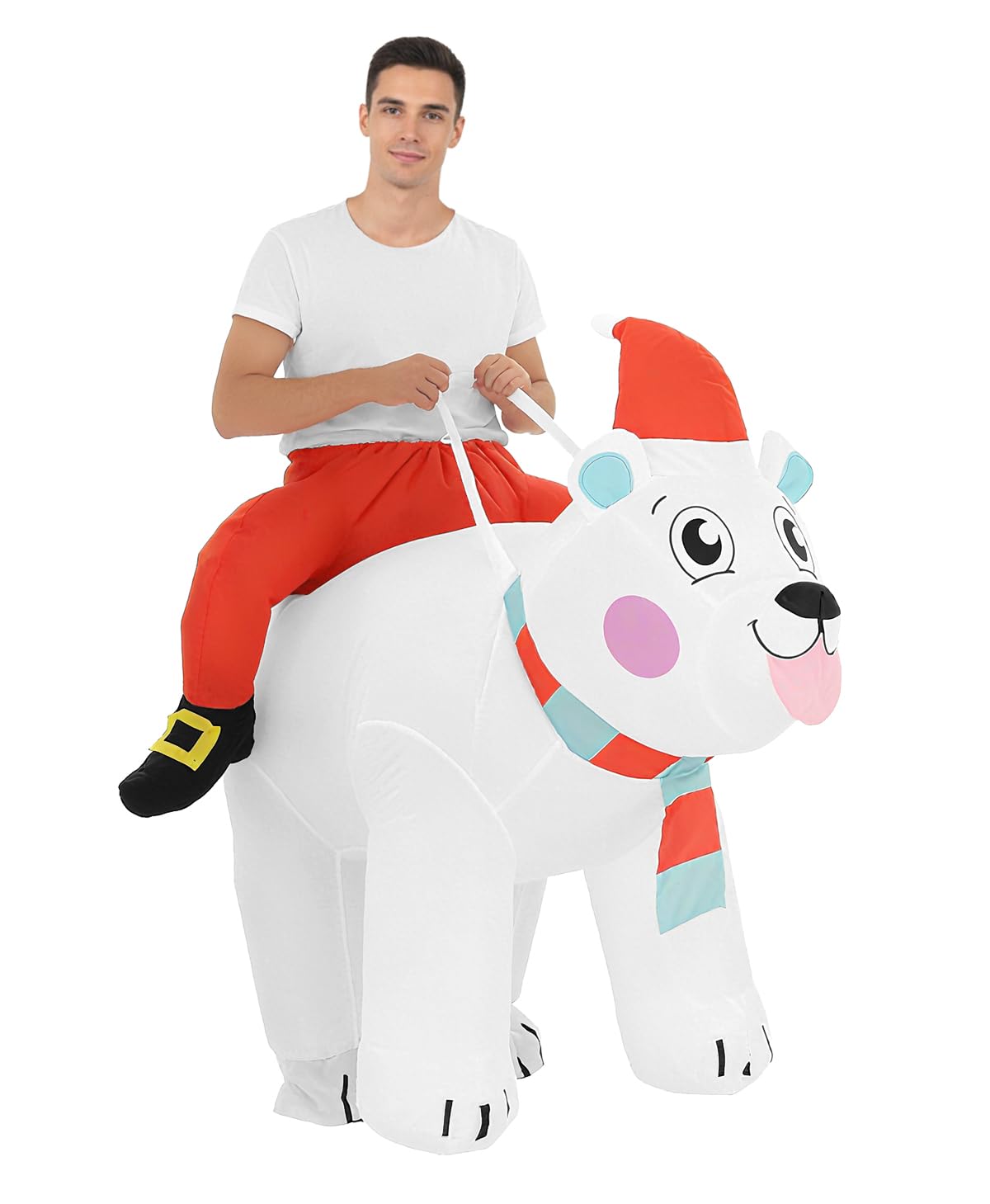 Bear Inflatable Costume Riding Polar Bear Air Blow up Costumes Funny Fancy Dress Party Christmas Costumes for Adult