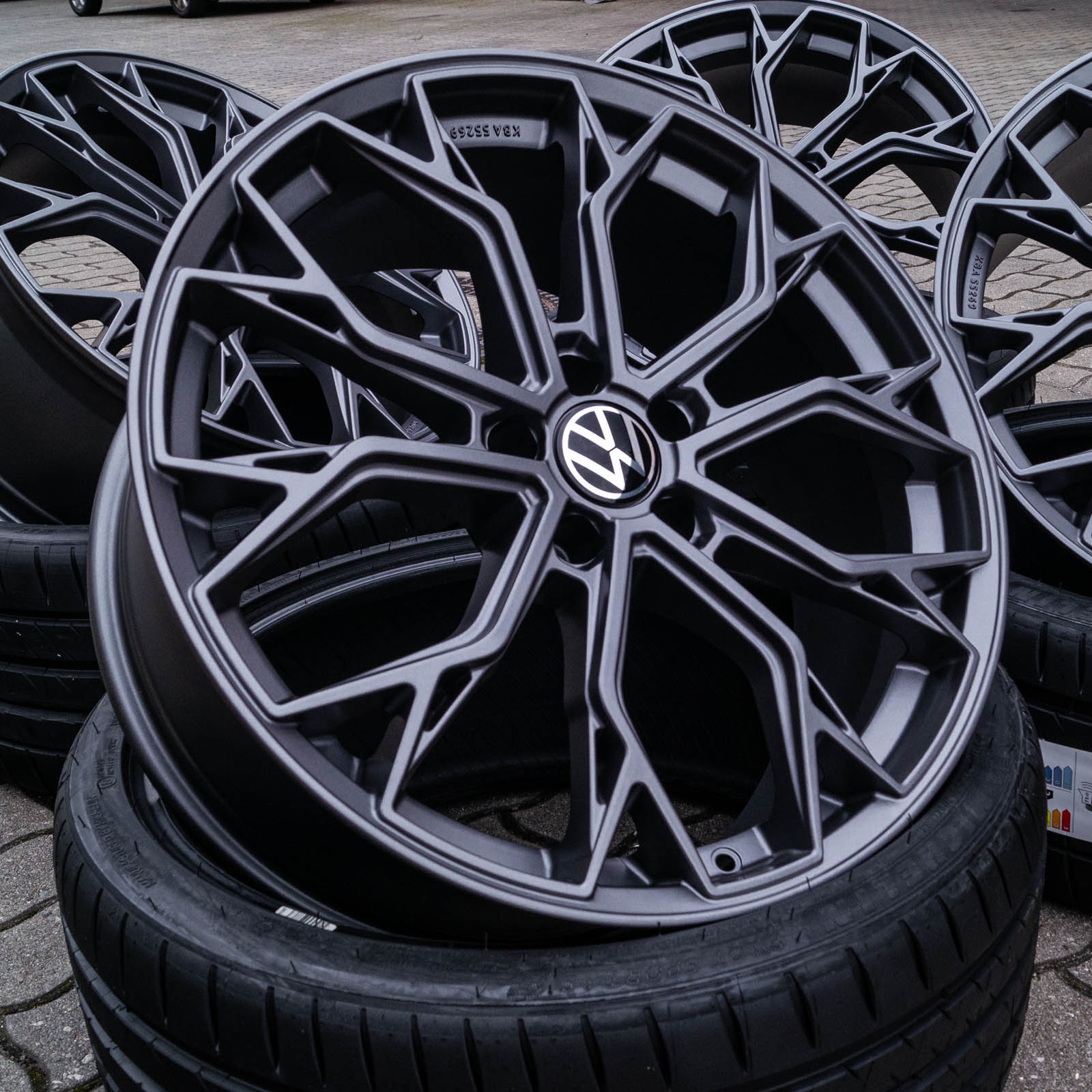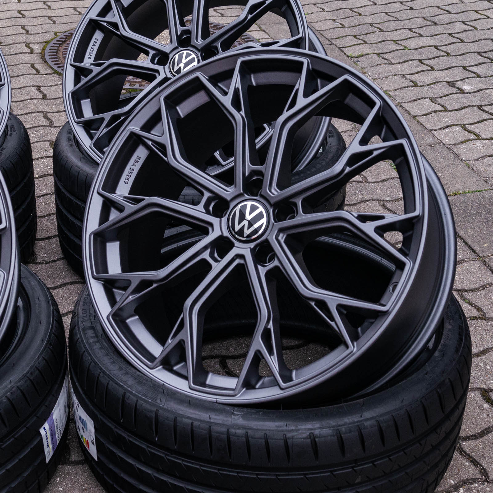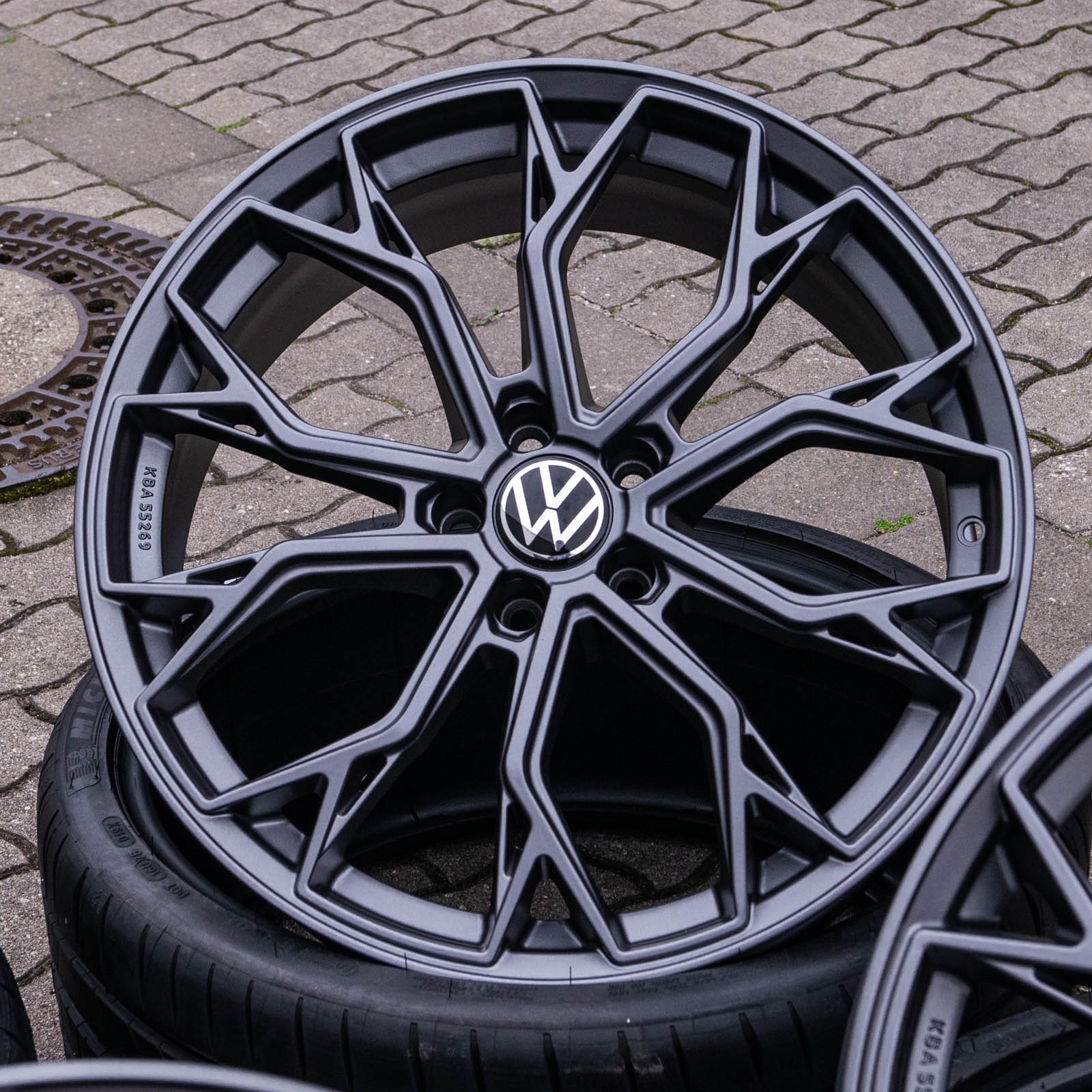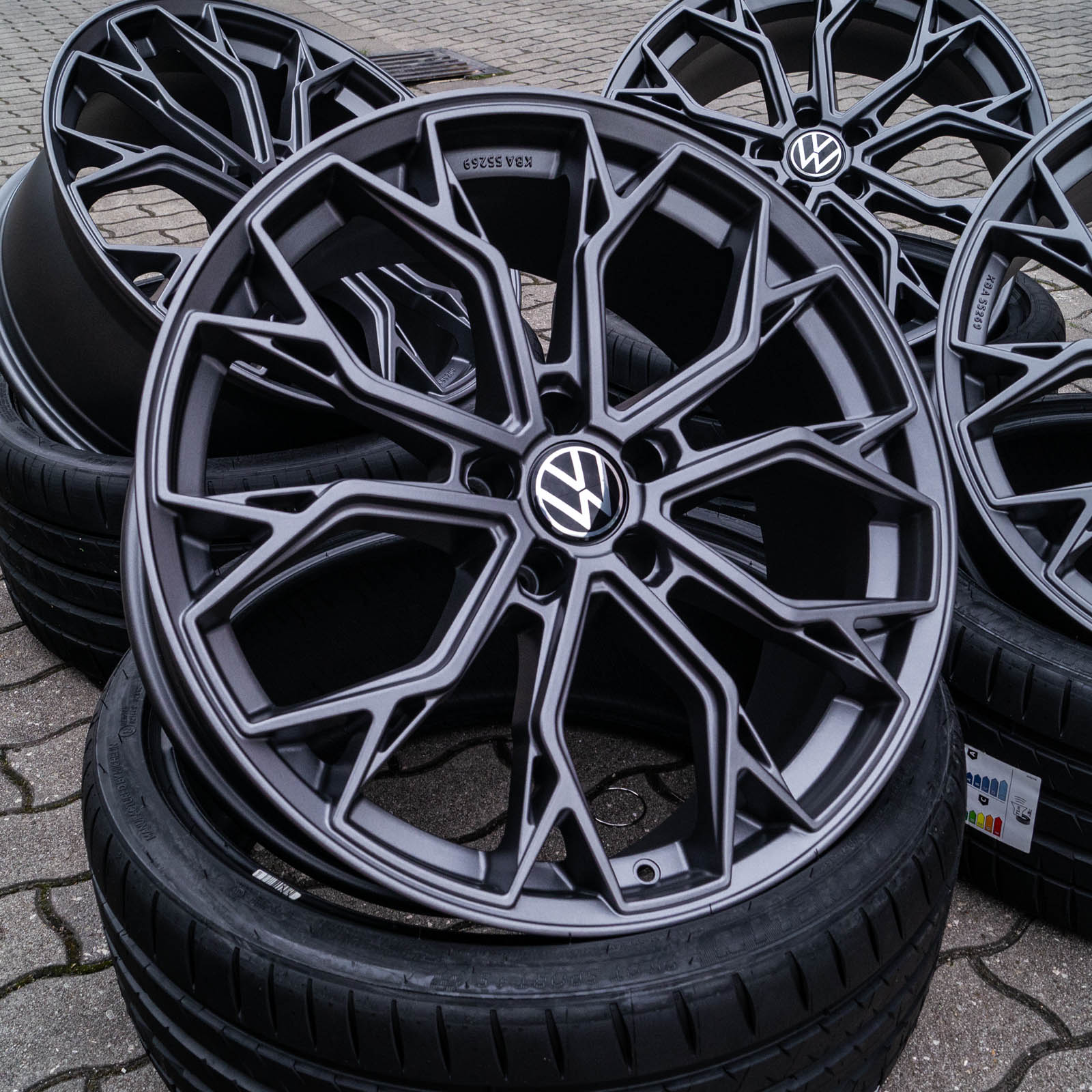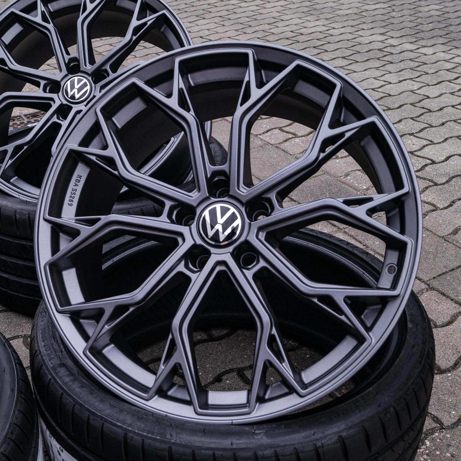 4x neue Alufelgen 20 Zoll ohne Reifen - RW03 8,5Jx20 ET45 5x112 Grau Matt - 1x ABE/Gutachten - 4x Nabendeckel Raederwerk (VW Deckel nicht enthalten)