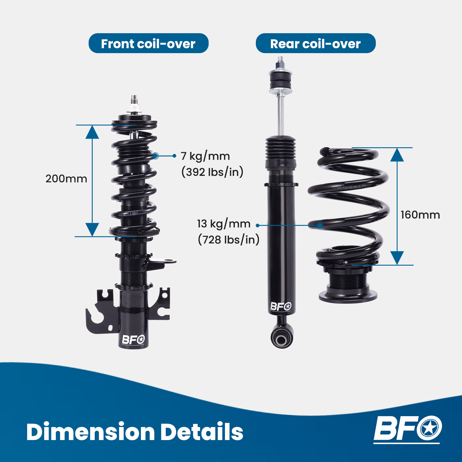 | Front Spring Rate | 7kg/mm (392 lbs/in) |
