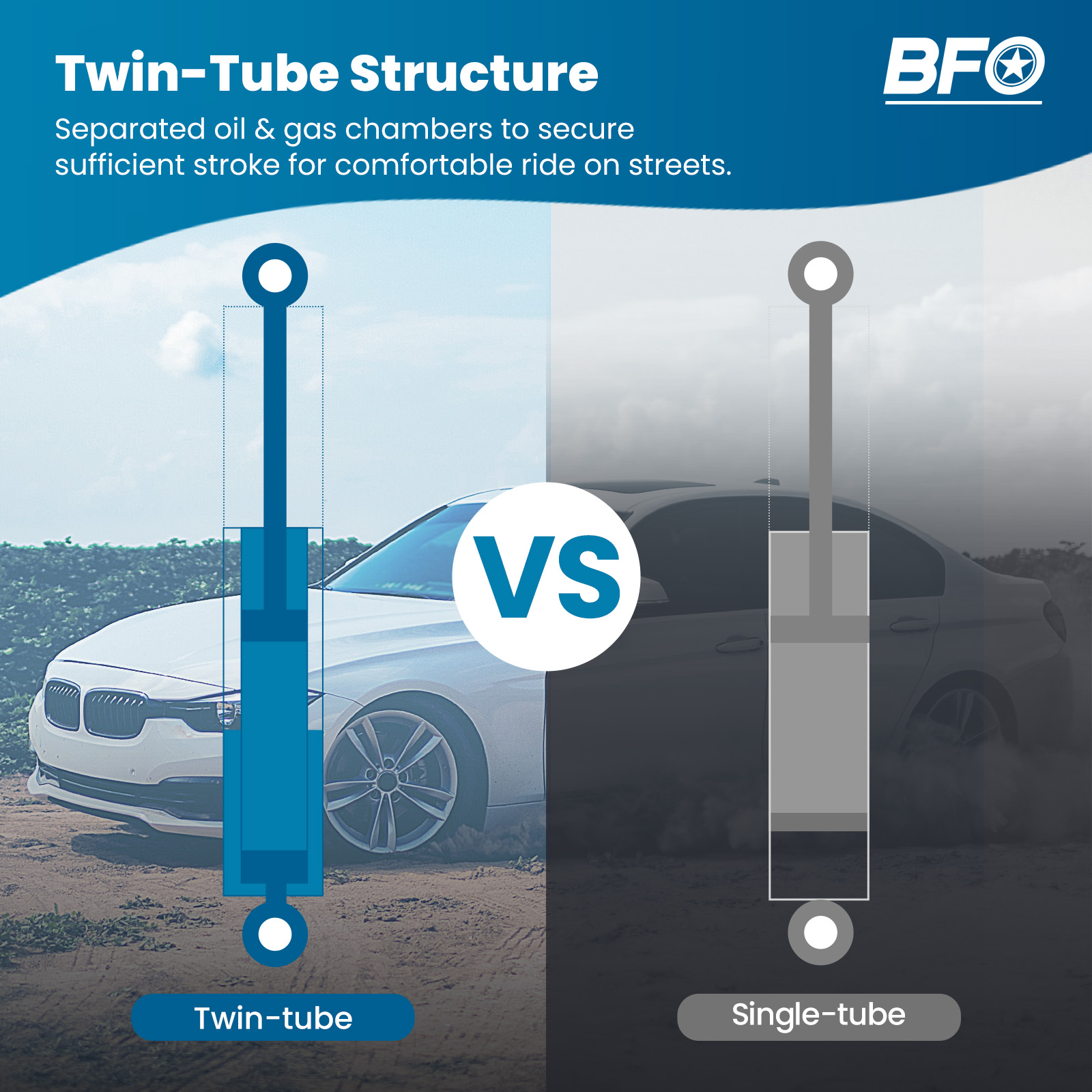 - Twin-Tube System for Comfortable Ride on Streets