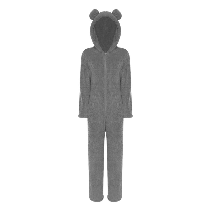 Womens Homewear Cozy Jumpsuit Sleepsuit Rompers One-Color Warm Pajamas Flannel