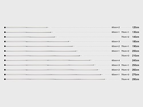 Material: Aluminum alloy (anodized)Size: Diameter 30 mm x 280 cm (70cm pipe four passage) Weight: 1210 g