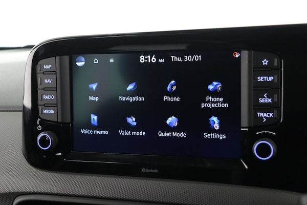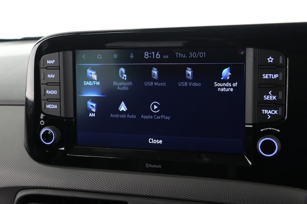 ..8'' Touchscreen satellite navigation including mapcare and LIVE services, Apple car play/Android Auto, Bluelink mobile remote connectivity, Bluetooth connectivity with voice recognition, Cruise control, Driver attention alert system, eCall emergency call system, Forward Collision-Avoidance Assist (FCA) - Pedestrian/Cyclist, Full-width 4.2'' LCD instrument cluster, Intelligent speed limit assist, Lane departure warning system with lane keep assist - LKAS, Lane follow assist, PAS, Rear parking sensors, Rear view camera with guidelines, Roadside assistance, Start/Stop function, Tailgate, Trip computer, 2 front/2 rear speakers, Front and rear USB-C ports, Front USB connection, Leading vehicle alert (LVA), Steering wheel audio, phone and cruise controls, 1 speed non intermittent rear windscreen wiper, Black finish on B pillars, Body colour door handles, Body coloured bumpers, Body coloured door mirrors, Electric front windows, Electric rear windows, Electrically adjustable and heated door mirrors, Flat metal emblem, Front grille in matte black, Front intermittent wipers, Halogen headlights, Headlights inner with Black Blade design, Heated rear window, High beam assist, Indicator light on door mirrors, LED daytime running lights, Rear roof spoiler with integrated LED brake light, Rear side wing doors, 12v power outlet - front, 3 seat bench in 2nd row, 60/40 split folding flat to floor rear seats, Auto light control, Bottle holders in front/rear doors + front centre console, Cabin and luggage compartment interior lighting, Cloth upholstery, Driver + passenger vanity mirrors, Driver's seat height adjustment, Driver/passenger sunvisors with ticket holders, Floor mats, Front door pockets, Front Head Restraints - Vertical and Horizontal Adjustment, Glove compartment, Height adjustable steering column, Isofix child seat preparation, Leather wrapped steering wheel and gear knob, Manual air conditioning, Rear door pockets, Single front passenger seat, Vertical adjustment rear head restraints, 3x3 point rear seatbelts, Airbags - front, front side and curtain airbags, Anti-lock brake system (ABS), Autonomous emergency braking (AEB) with forward collision warning system, Brake assist function, Childproof rear door locks, Electronic stability control, Front and rear seatbelt reminder, Front seatbelt pretensioners, Hill start assist control (HAC), Passenger airbag deactivate switch, Traction control, Tyre pressure monitoring system, Immobiliser, Perimeter alarm, Rear