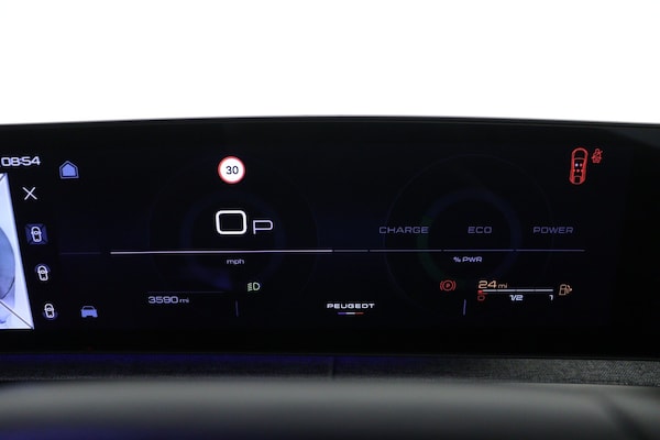 ..Bluetooth with two microphones (Connect up to 2 phones), Drive modes select (Eco, normal and sport) with configurable ambient lighting, Driver attention alert, Driver foot rest, Driver profile selection, E-call, Exterior temperature indicator with ice warning, Front passenger seat detection, Lane keep assist, Manual gear changes via steering mounted paddles, Multi function trip computer, Natural voice recognition, PEUGEOT i-Cockpit - 21'' HD panoramic curved display incorporating instrument panel and touchscreen with 3colour themes, PEUGEOT i-connect advanced HD fully customisable touch screen, Navigation with Tom Tom Live updates and over the air map updates, PEUGEOT SOS and assistance, Rear parking sensor, Speed limit and traffic sign recognition and recommendation, Wireless mirror screen with apple carplay and android auto, Wireless smartphone charger with status light and ambient lighting, Dynamic stability control and electronic anti-skid system, 2 USB-C ports in the front, 6 speakers, AM/FM bi-tuner, DAB Radio (Digital Audio Broadcasting), Peugeot customisable virtual iToggles, 3008 model designation badgers front and rear in basalt grey, Acoustic windscreen, Automatic hazard light activation upon heavy brake application, Automatic headlamp activation, Automatic windscreen wiper activation with interval wiping intensity control, Body colour floating effect rear roof spoiler, Body colour roof, Body coloured exterior door handles, Dark tinted privacy glass for rear door, Tailgate and Quarter windows, Door mirrors - Welcome lighting and integrated LED indicators, Eco LED headlights, Electric adjustable/heated/folding door mirrors, Electrochrome rear view mirror, Flat blade wipers with magic wash integrated nozzles, Front and rear electric windows with one touch, Front grille with body coloured accents, Gloss black connecting strip between rear lights, Gloss black finish B pillar, Grained black lower door claddings and wheel arches, Hybrid rear badging in basalt grey, Laminated windscreen, LED exterior lighting, LED third brake light, Lower front and rear bumper trims in meteor grey, Orbital gloss black door mirrors, Peugeot 3-claw signature front and rear daytime running lights, Rain sensor, Rear side wing doors, Tailgate with heated rear window, 2 cupholders in front centre console, 3 seat rear bench, 3x 12V sockets (Cabin front and rear and boot), 4 Grab handles retractable and damped, 4 tie down luggage rings, 40/20/40 folding rear seat backrest