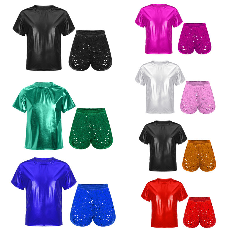 Short sleeve T-shirt with metallic shiny surface, ensures your child eye-catching on the stage.