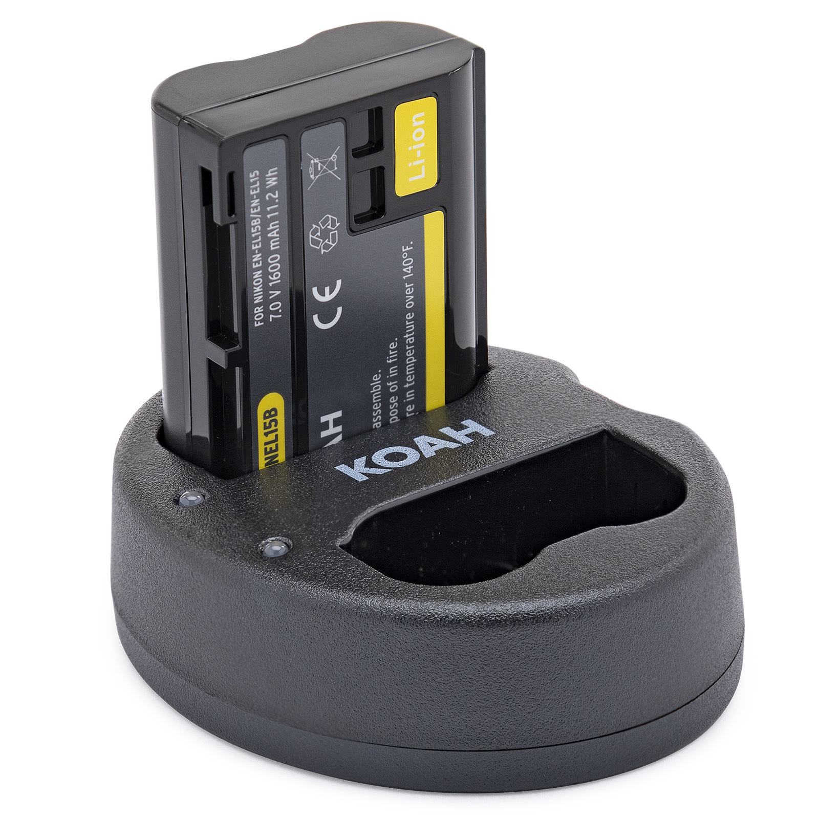 Get the most out of your Nikon camera with this Koah Rechargeable Battery and Charger Kit. Compatible with Nikon EN-EL15 / EN-EL15B, you can be sure you always have enough power to make it through the shoot. The kit includes dual replacement batteries for the Nikon EN-EL15 camera series and a USB charger. Quickly change out your camera's batteries and keep the shoot going.
